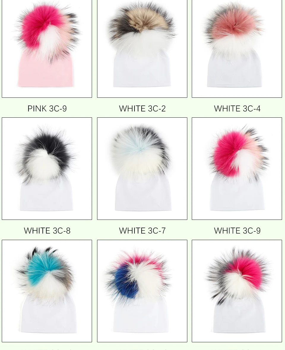 Newborn Baby Boys Girls Beanies Hats Soft Warm Toddler Children Cotton Beanies hats Gorros With triple color Real Fur Pompom