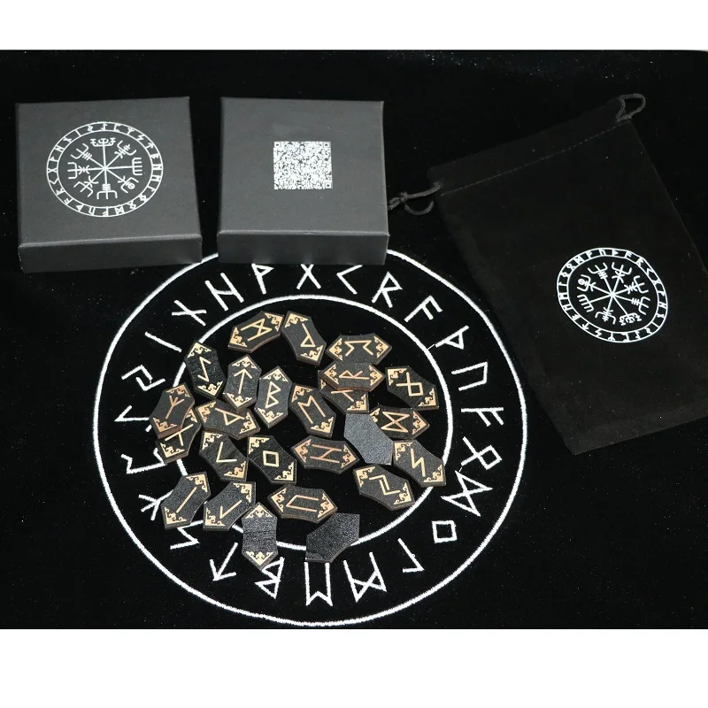 Деревянные руны, руны Пьедра для гадания, резной деревянный энергетический камень, Набор рун, символы, буквы с сумочкой, скатерть