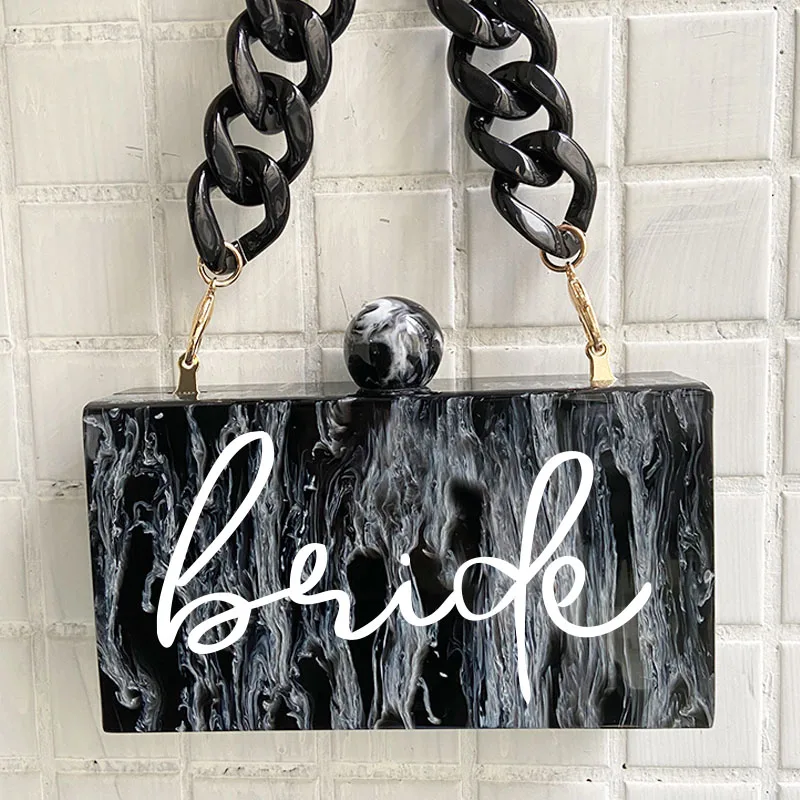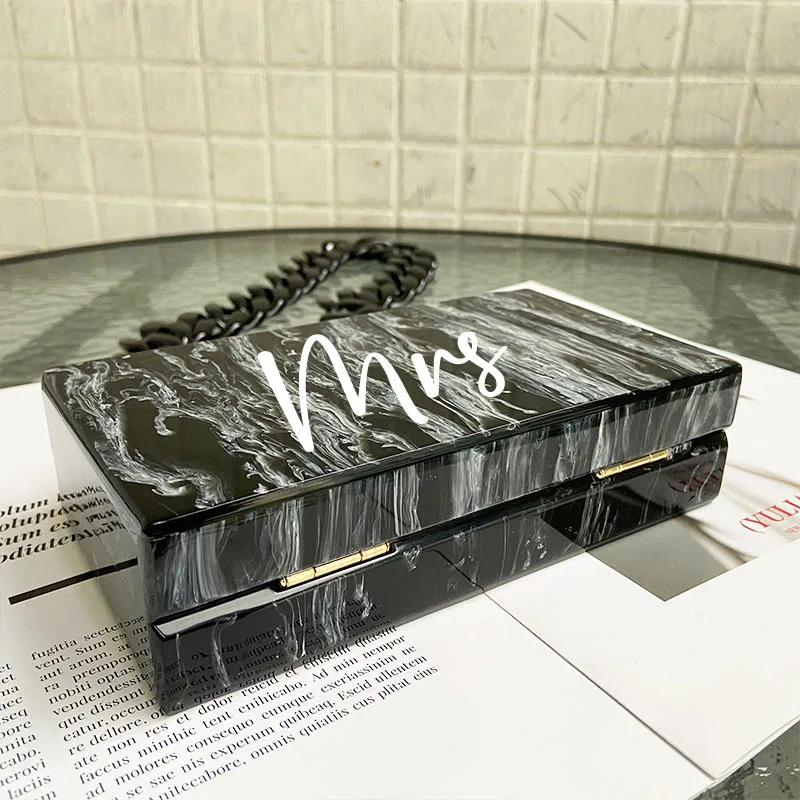 Индивидуальный акриловый клатч, новые модные мраморные акриловые сумки, винтажные женские сумки-мессенджеры, черные и белые сумки с чернильным рисунком