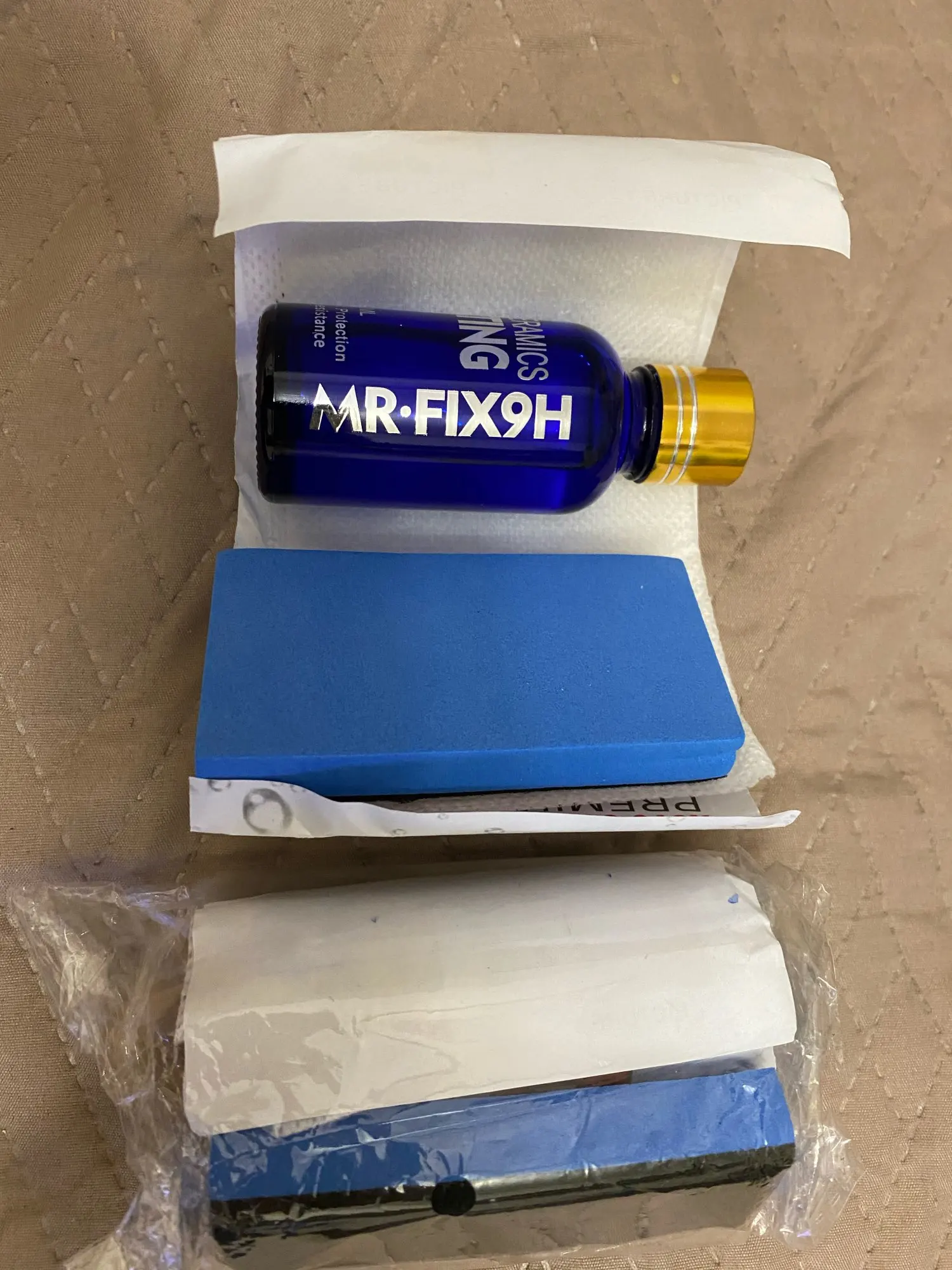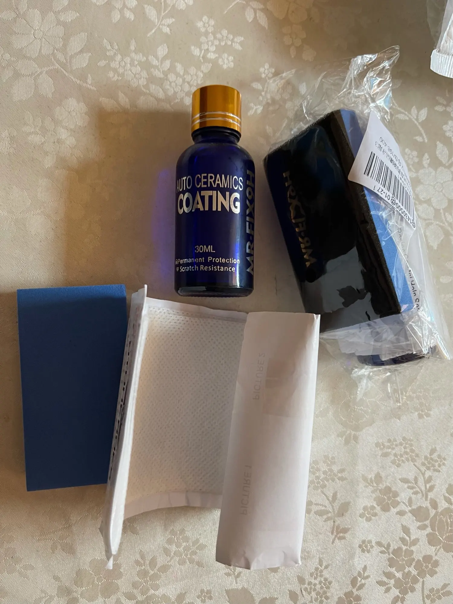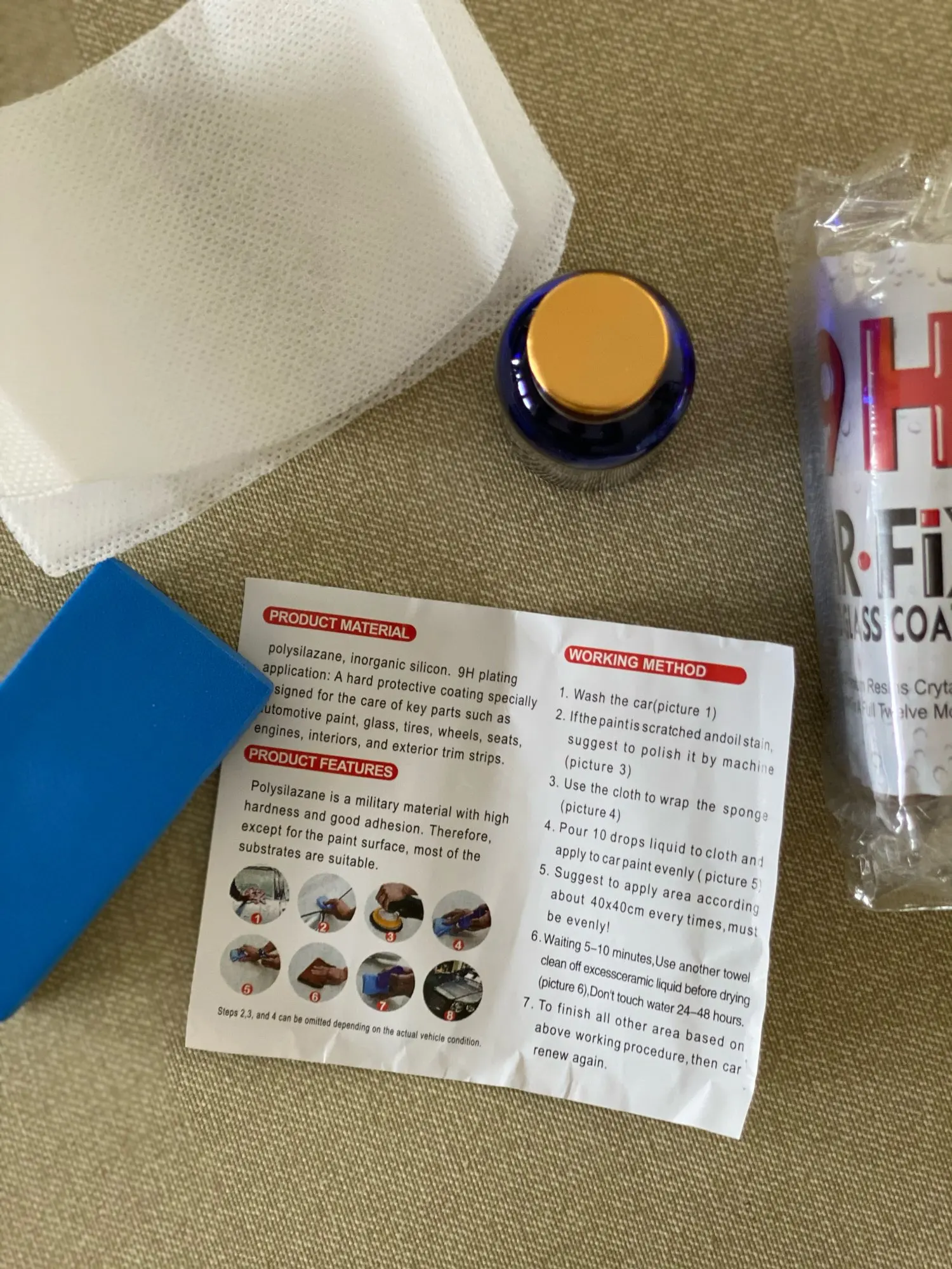 Я еще не пробовал его, но продукт пришел и был в соответствии с тем, что показано на фотографиях. Поставляется в небольшой упаковке с инструкциями, салфеткой и губкой, а также инструкциями о том, как применять и использовать продукт. Красивая яркая сине-фиолетовая маленькая бутылка. Выглядит так, будто это хороший продукт, я надеюсь, что мне не придется использовать его для своей машины, а лучше зафиксировать стекло из рамки для картины, например. Спасибо!