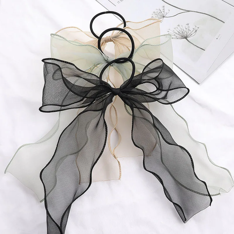 Резинки для волос женские, из органзы, с бантом, мягкие, резинка для хвоста