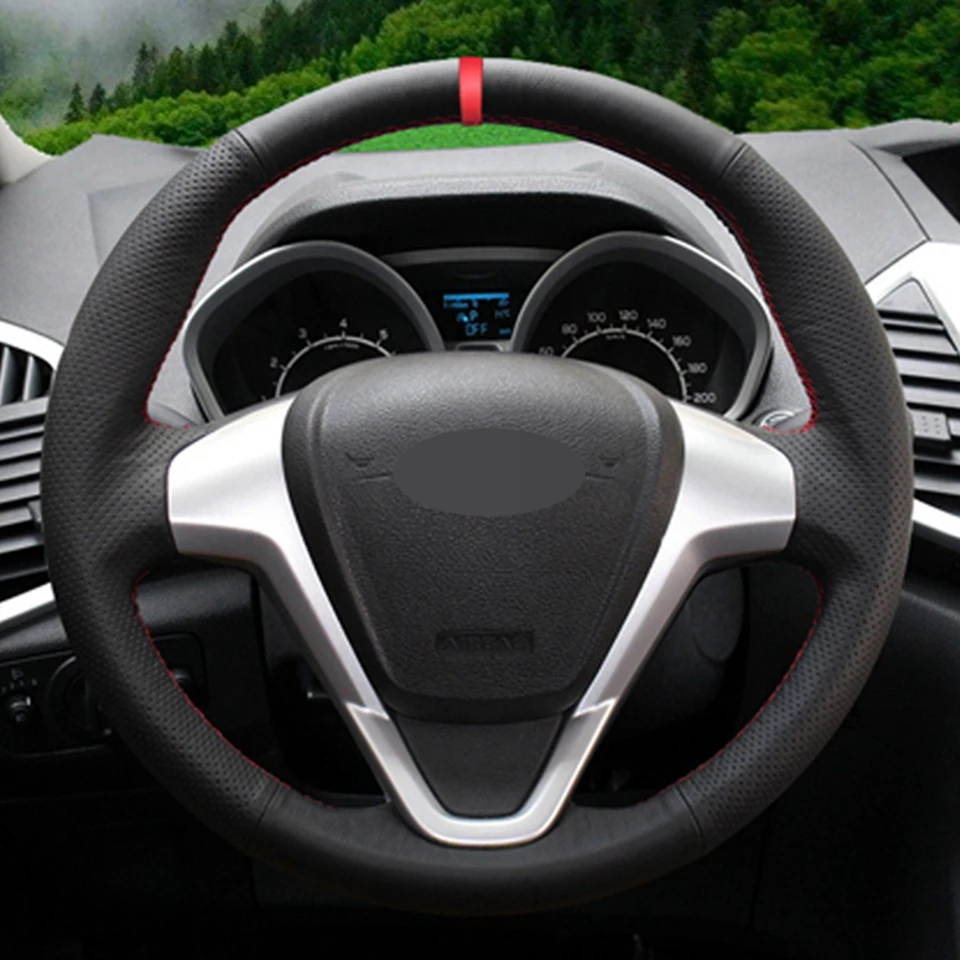 DIY ручной работы черного цвета из искусственной кожи чехол рулевого колеса автомобиля для форд фиеста 2008-2016 2017 Ecosport 2014- 2015 2016 2017