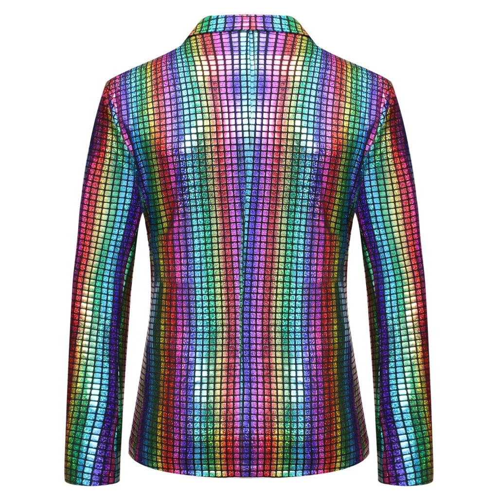 Блестящий блестящий мужской блейзер в радужную клетку, новинка 2022...
