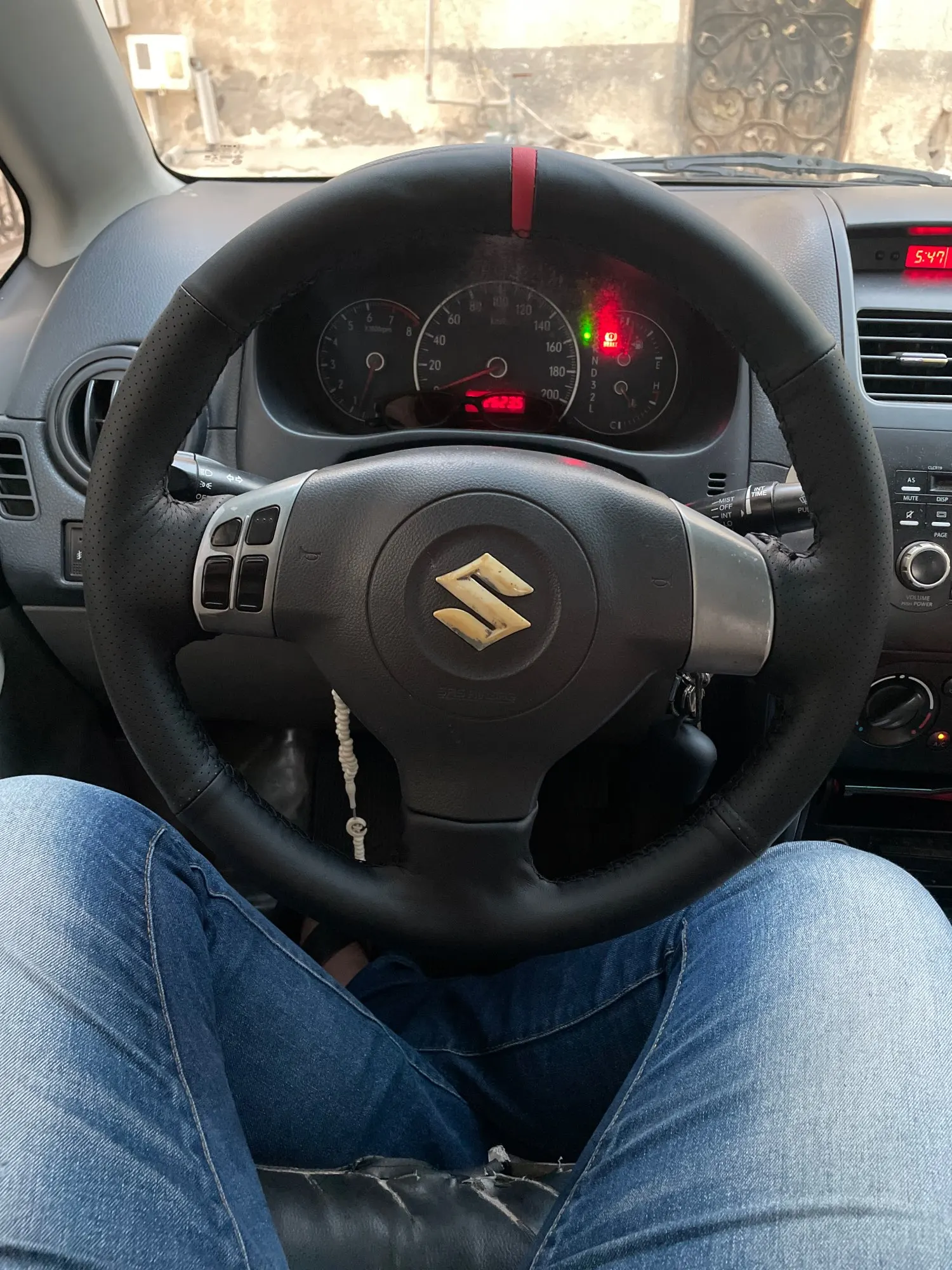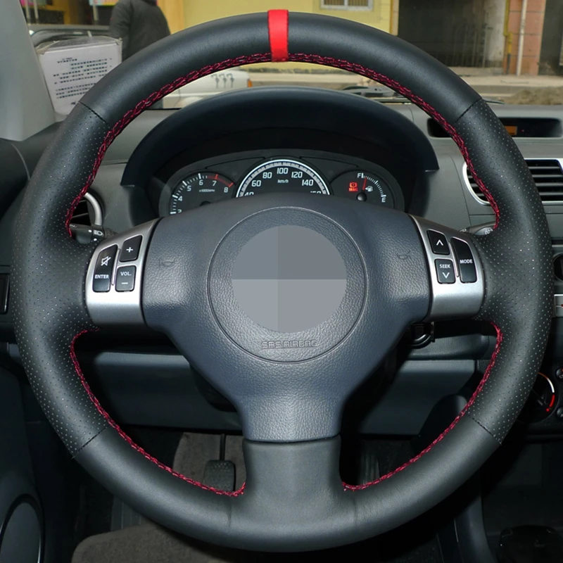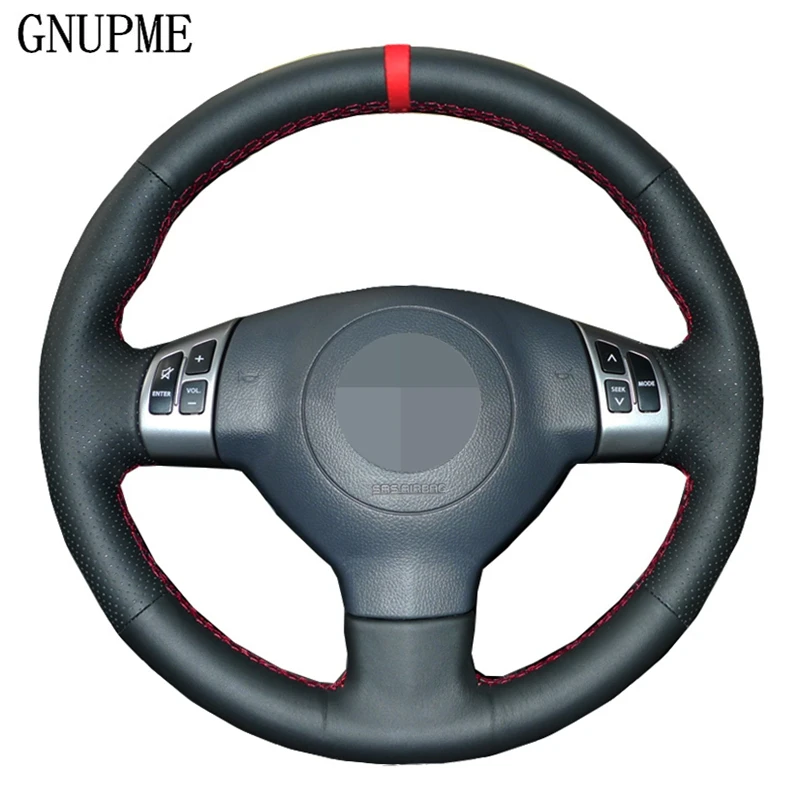 DIY ручной работы черного цвета из искусственной кожи чехол рулевого колеса автомобиля красный маркер для Suzuki Swift 2011 2012 2013