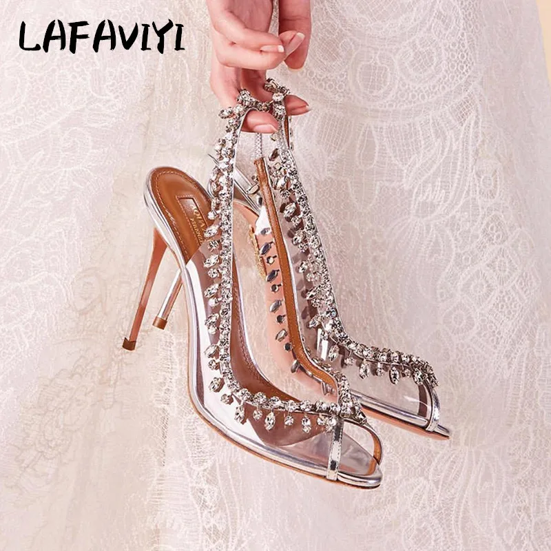 Роскошные Дизайнерская обувь для женщин элегантные свадебные туфли с открытым носком пикантные женские туфли-лодочки из ПВХ без застежки на тонком каблуке размеры 34-45