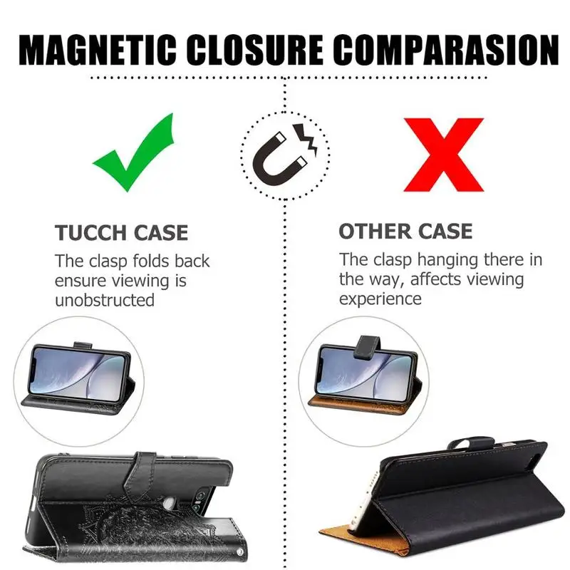 Feature 2Card Slots / Stand Function / Magnetic Buckle