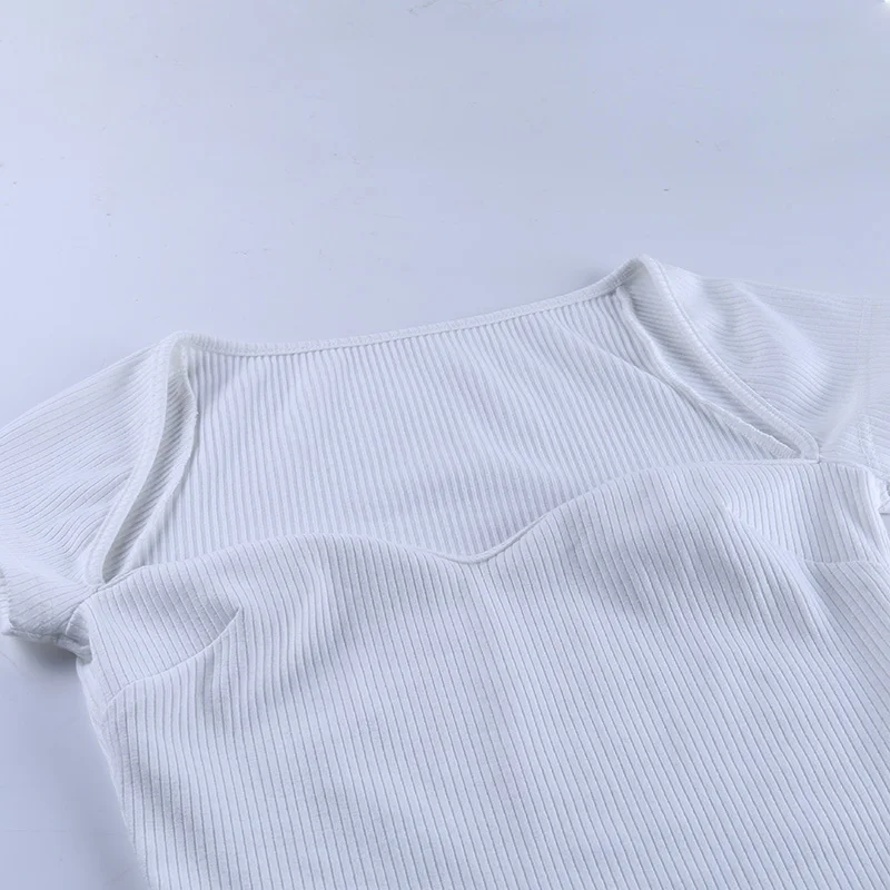 Женская хлопковая Футболка InstaHot, летний облегающий топ с квадратным вырезом и коротким рукавом