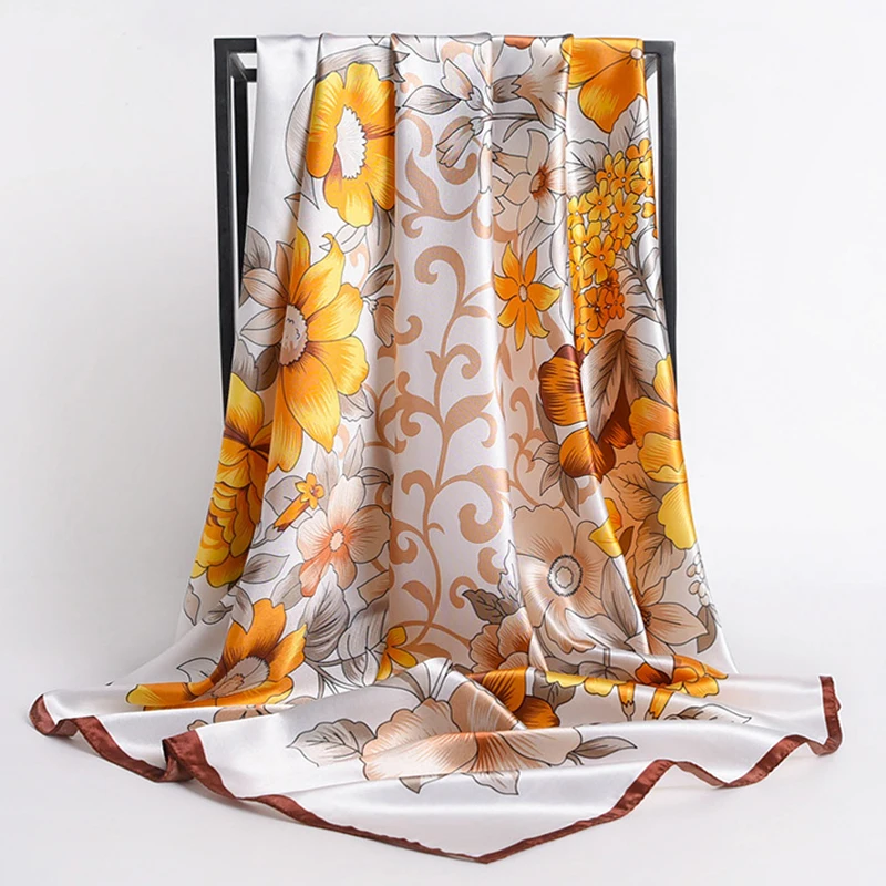 Шелковые шарфы, женский платок 90*90 см, квадратный головной платок...