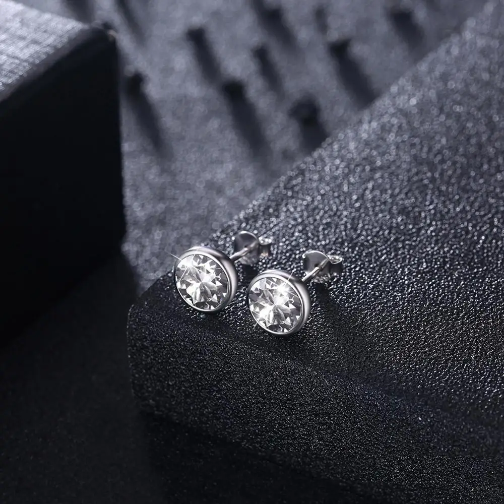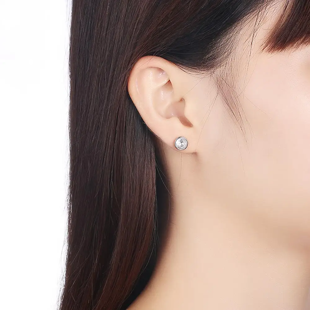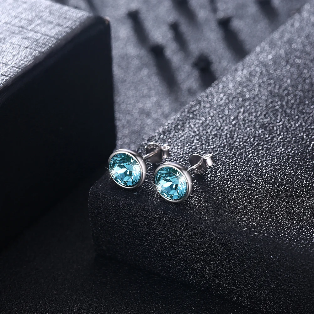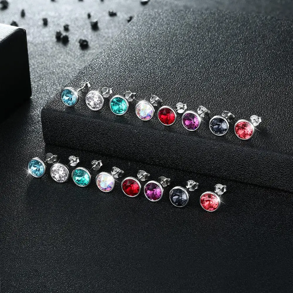 Серьги-гвоздики LEKANI женские, круглые ювелирные украшения из стерлингового серебра 925 пробы с настоящими кристаллами Сваровски, 8 цветов, хороший подарок на свадьбу