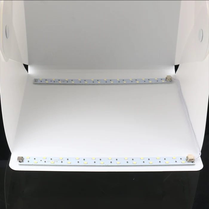 Портативная, складная, Магнитная конструкция цепи удобнее для установки и переноски. Он имеет встроенный светодиодный светильник, обеспечивающий полный светильник, предотвращая при этом появление теней и отражений на фотографиях.