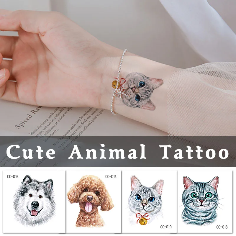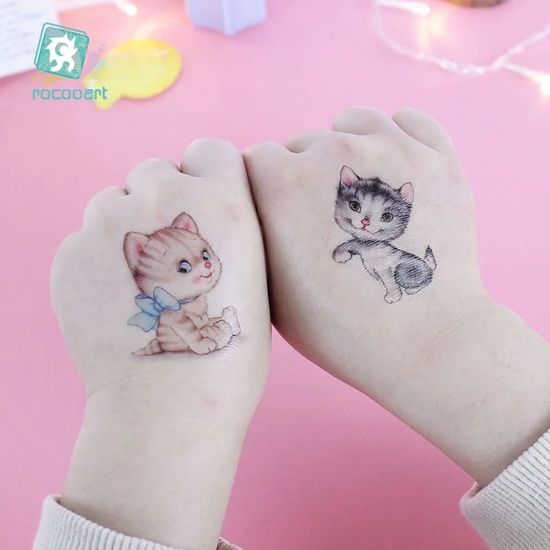 Временная татуировка Rocooart в виде кошки и собаки, наклейка с акварельными животными, для девочек, женский боди-арт