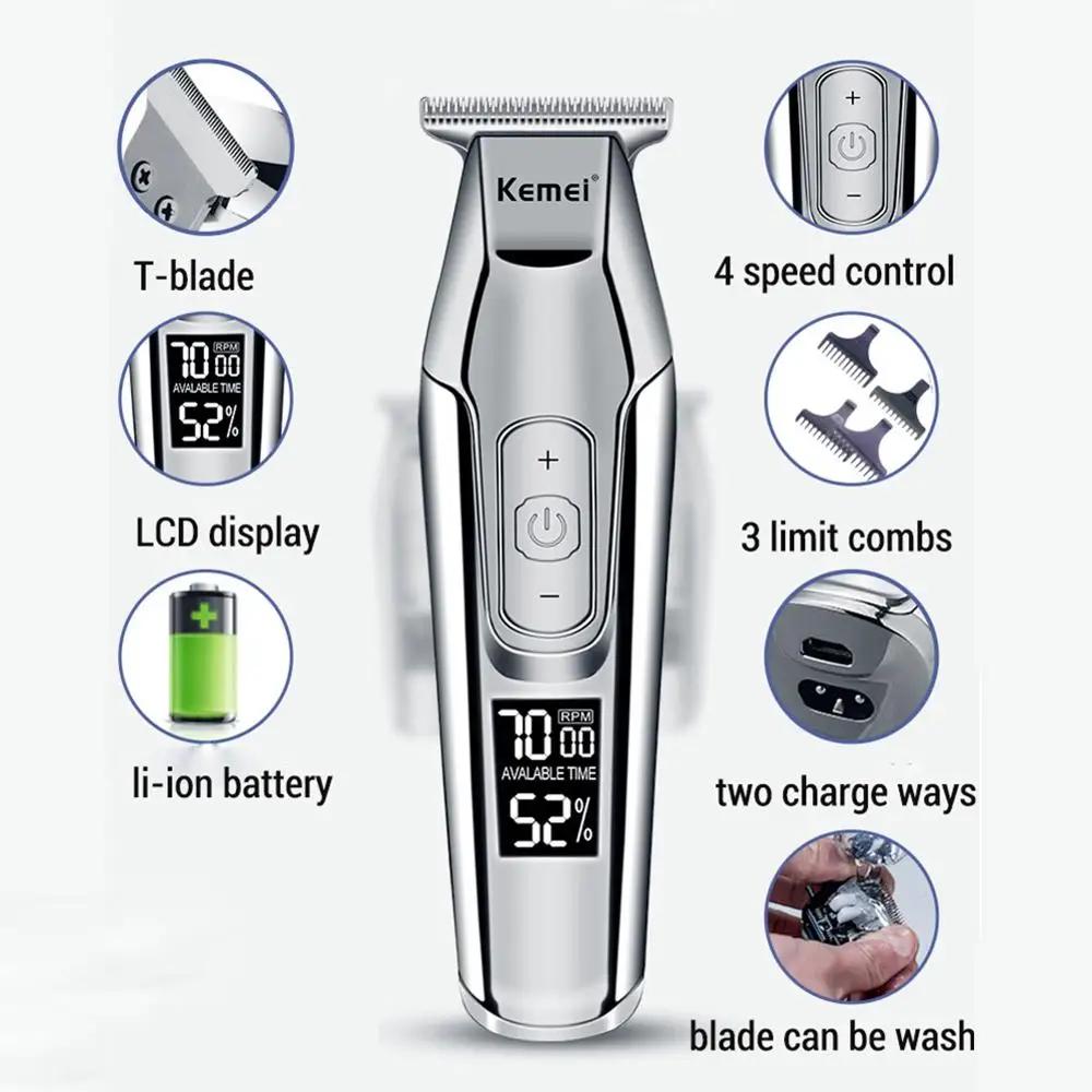 KEMEI KM-5027 для стрижки волос триммер для волос триммер для носа Для мужчин волосы машинка для стрижки бороды и усов Перезаряжаемые Парикмахерская Уход за лошадьми комплект с 3 направляющей расчески