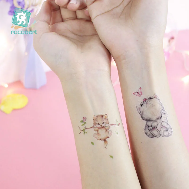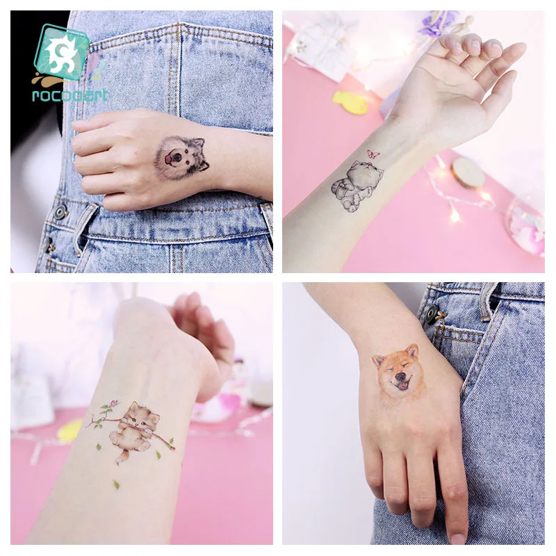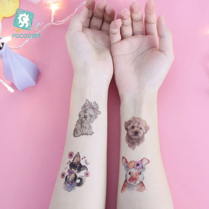 Временные татуировки Rocooart с изображением животных, детские, маленькие, водонепроницаемые, модные, имитация боди-арта, татуировки с милой собакой, кошкой