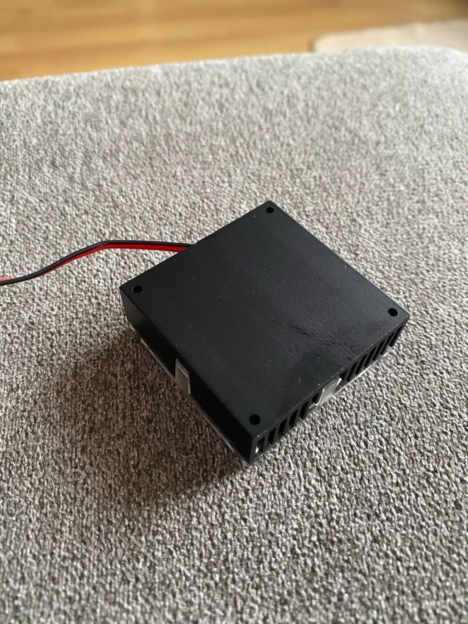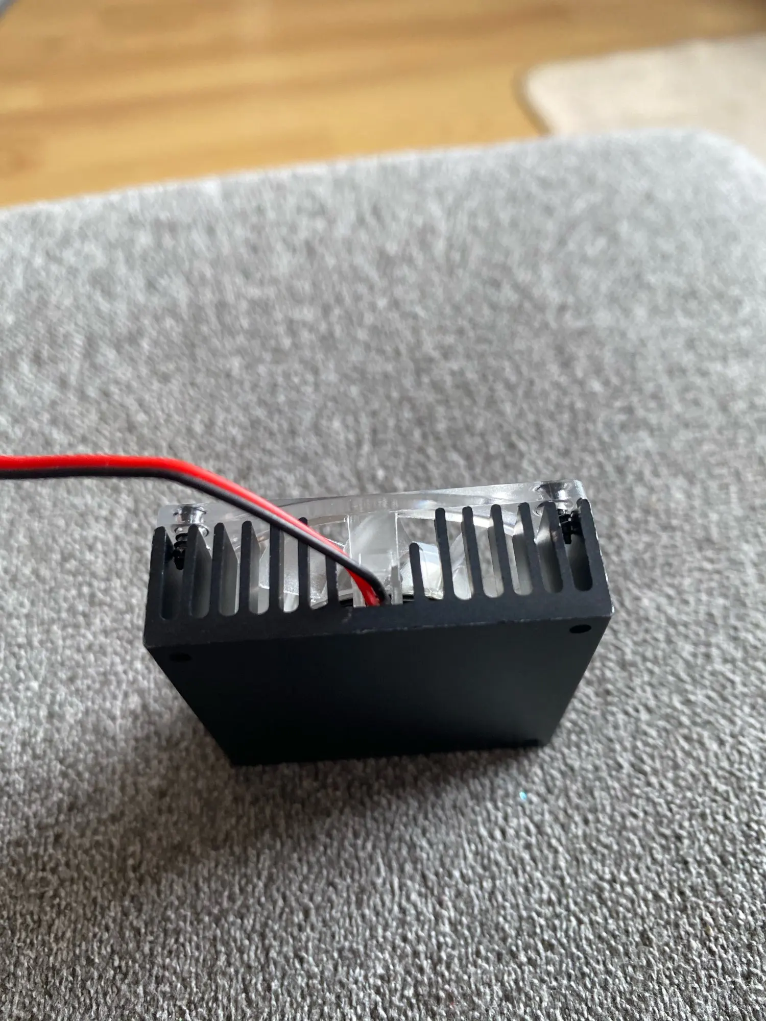 Материал вентилятора-пластик, а фактический радиатор-алюминий; Его крепят с четырьмя болтами на отверстия без резьбы, в основном просто трение против самого металла. Я подключен от 5 вольт до 15 вольт и работает довольно хорошо при всех напряжениях. Его тихий, но для действительно небольших приложений он может вибрировать.