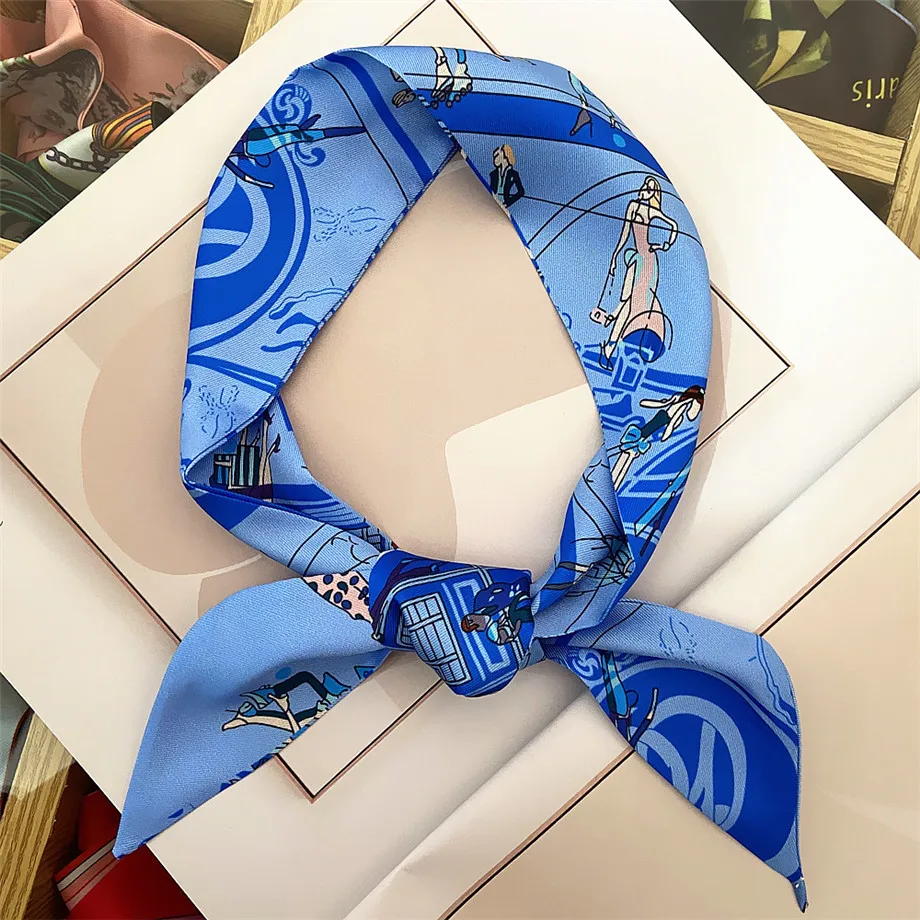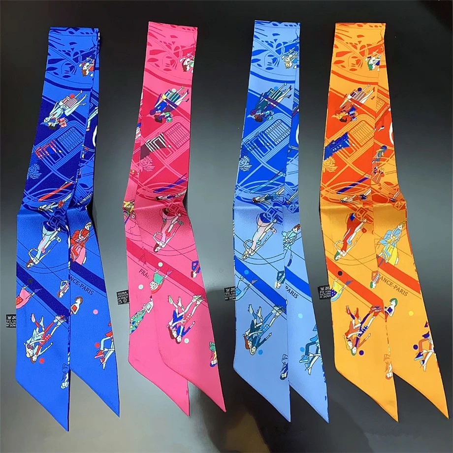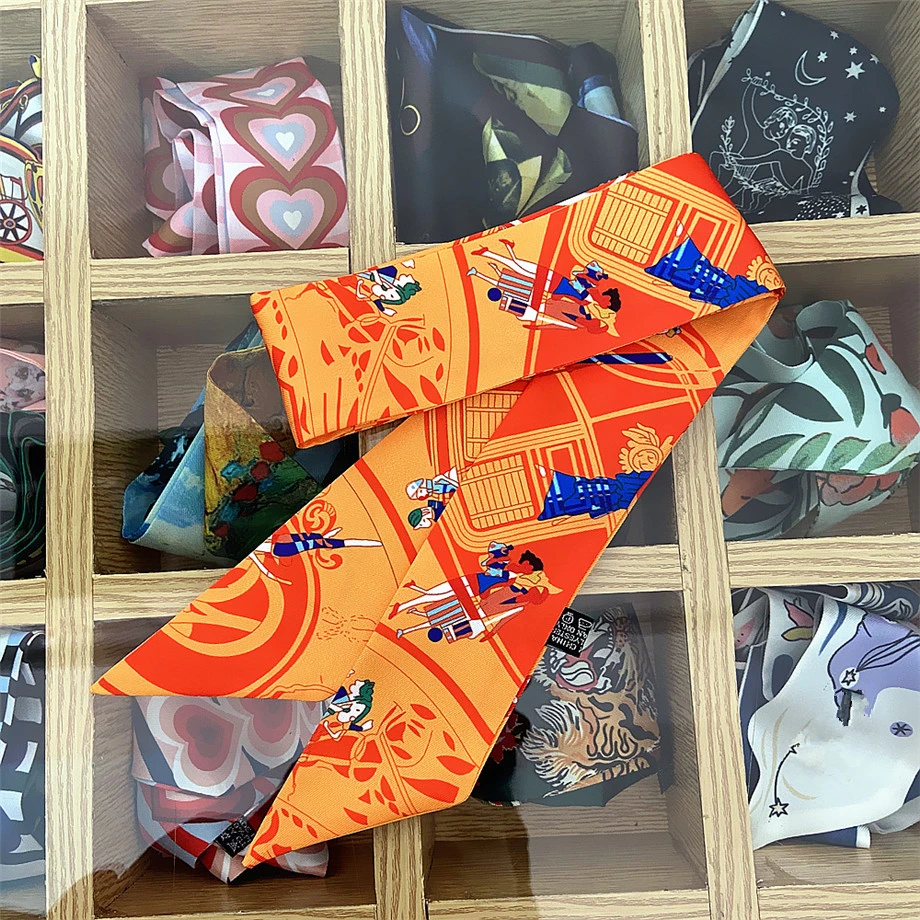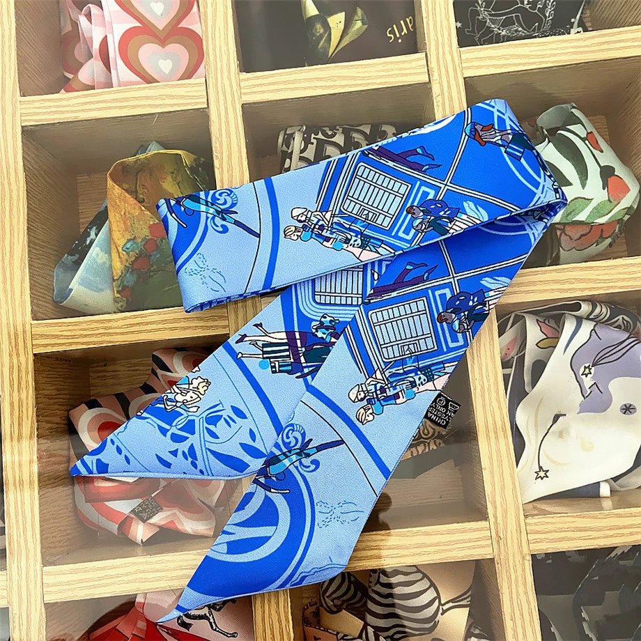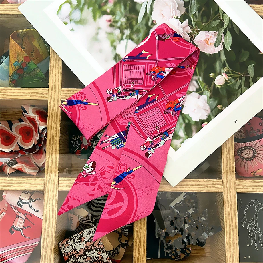 2021 новый дизайн, весенний обтягивающий шарф, женский роскошный брендовый шарф с мультипликационным принтом для влюбленных, Летний Шелковый шарф для дам