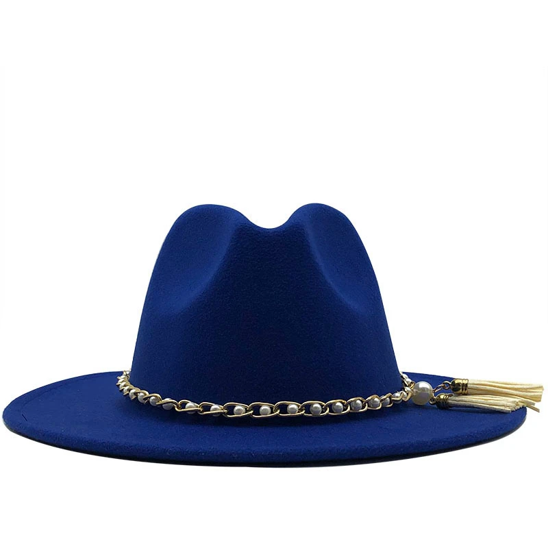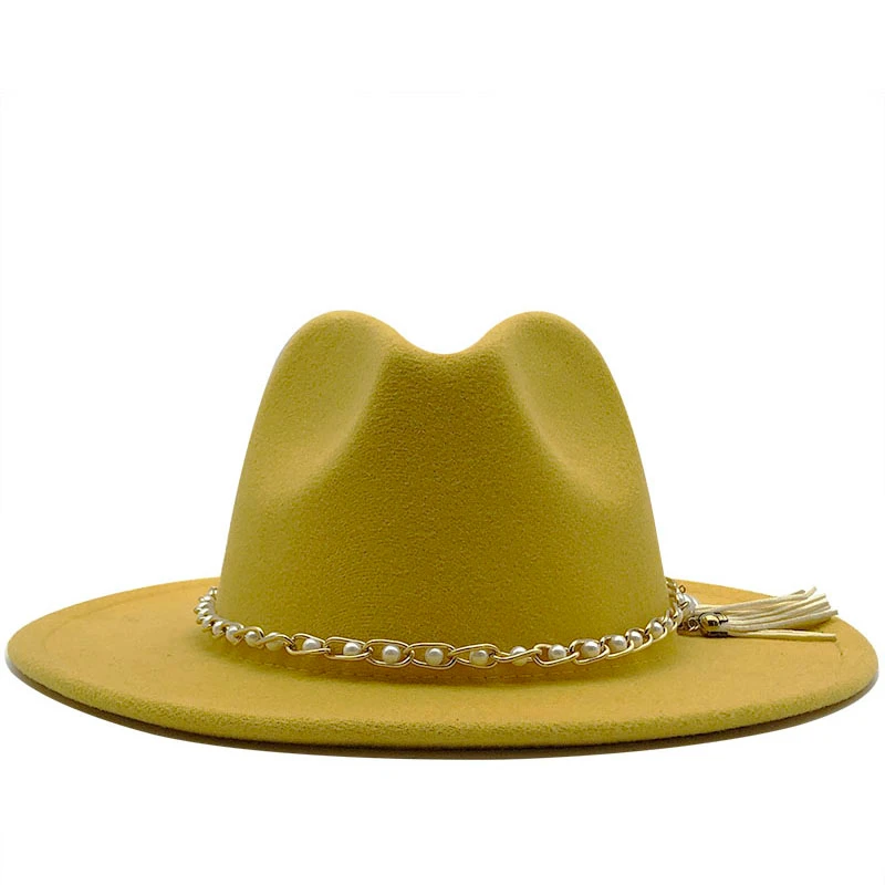 ЖенскаяМужская шерстяная фетровая Федора с широкими полями и кисточками, ковбойская фетровая шляпа-трилби большого размера, желтого и белого цвета