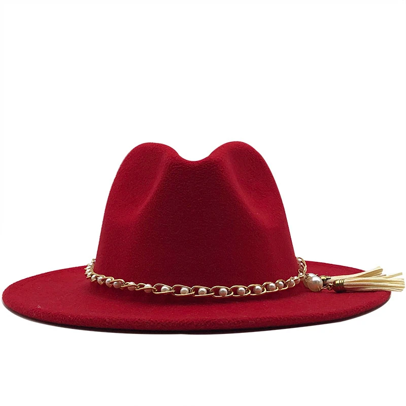 Шляпа Женская фетровая с жемчужинами, широкополая Федора для церкви...