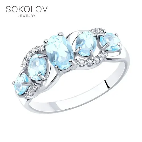 Кольцо SOKOLOV из серебра с топазами и фианитами, Серебро, 925, Жен...