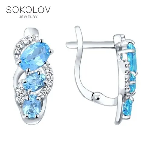 Серьги SOKOLOV из серебра с топазами и фианитами, Серебро, 925, Женские, Серьги 2022 тренд, Оригинальная продукция