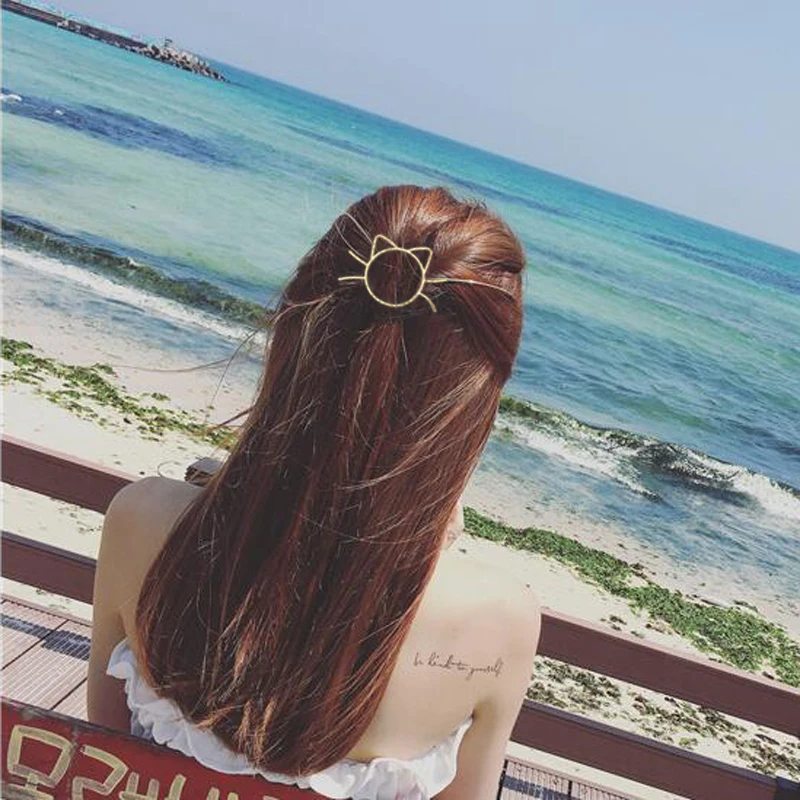 Женская Геометрическая заколка для волос Meow Cat, металлическая ск...