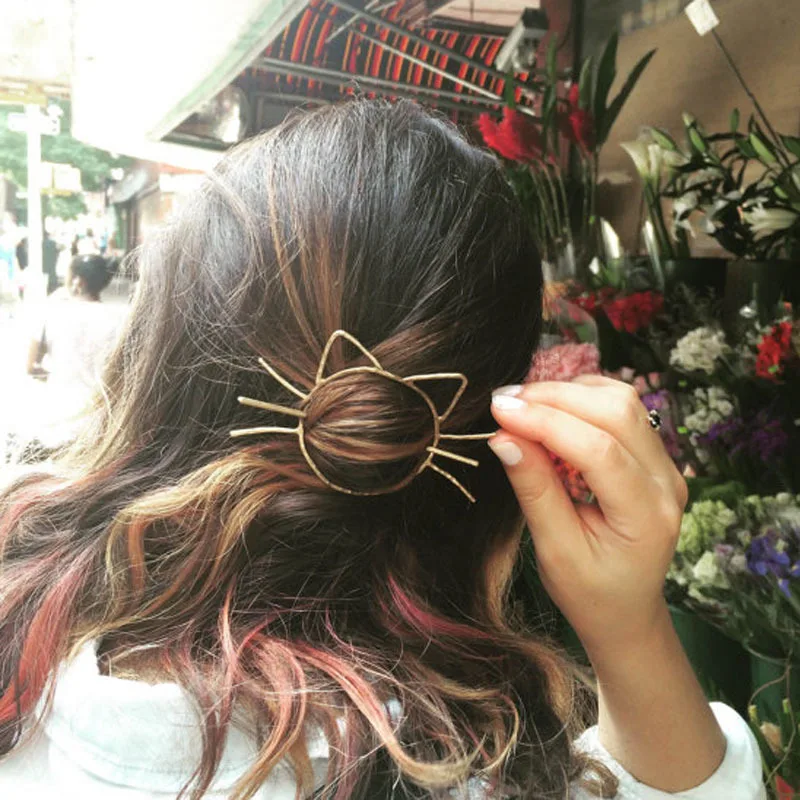 Зажим для волос женский геометрический Мяу Кошка пирсинг металличес...