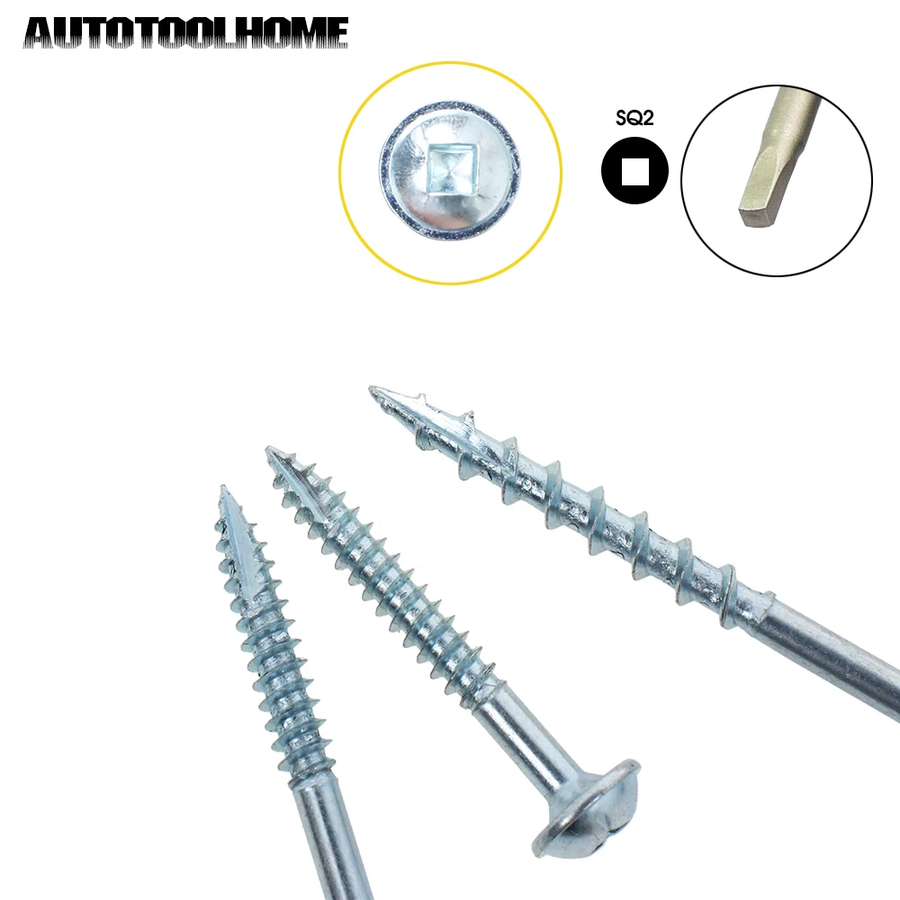 Винты имеют головку с квадратным приводом, которая работает с квадратным приводом, чтобы управлять винтами без скольжения драйвера.
