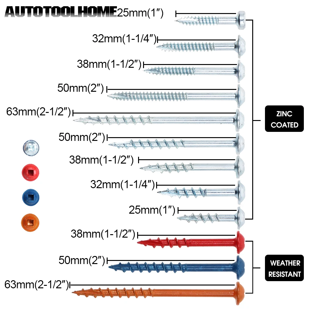 Деревообрабатывающие карманные винты для отверстий 25-63 мм грубая тонкая резьба саморезы #2 Квадратный привод для карманного отверстия джиг деревянные столярные изделия