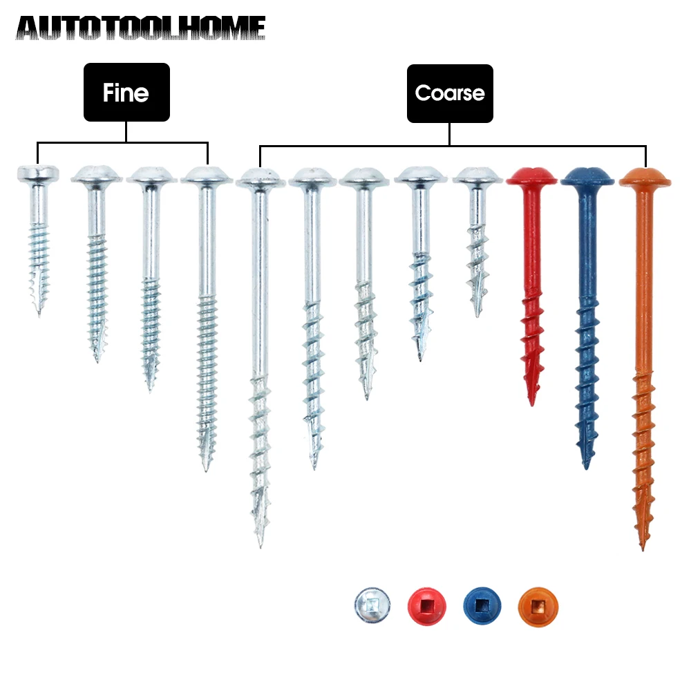 Винты с грубой резьбой отлично подходят для этих деревьев, а также являются предпочтительным выбором для листовых изделий, таких как фанера и мдф.