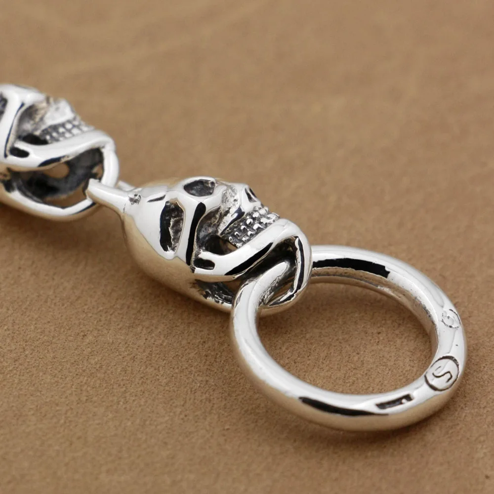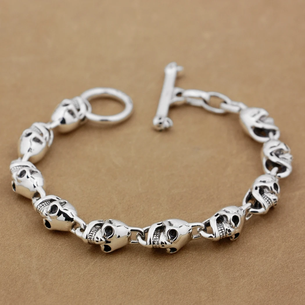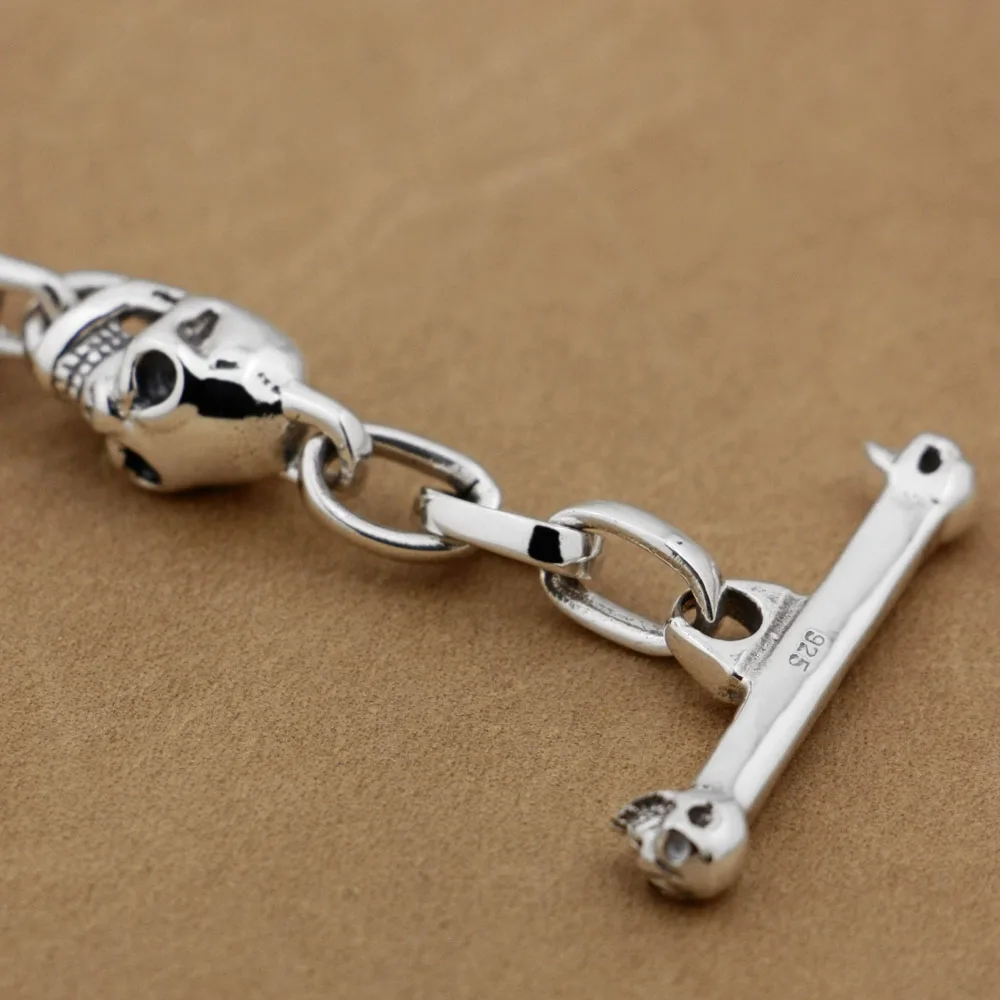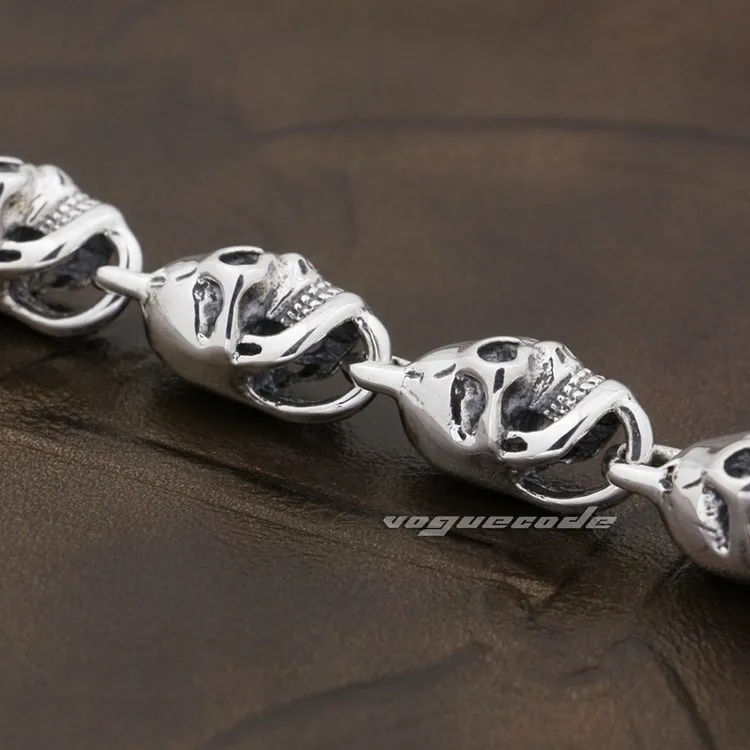 LINSION 925 серебро череп застежка OT Мужская Цепь Байкер браслет панк-рок TA42