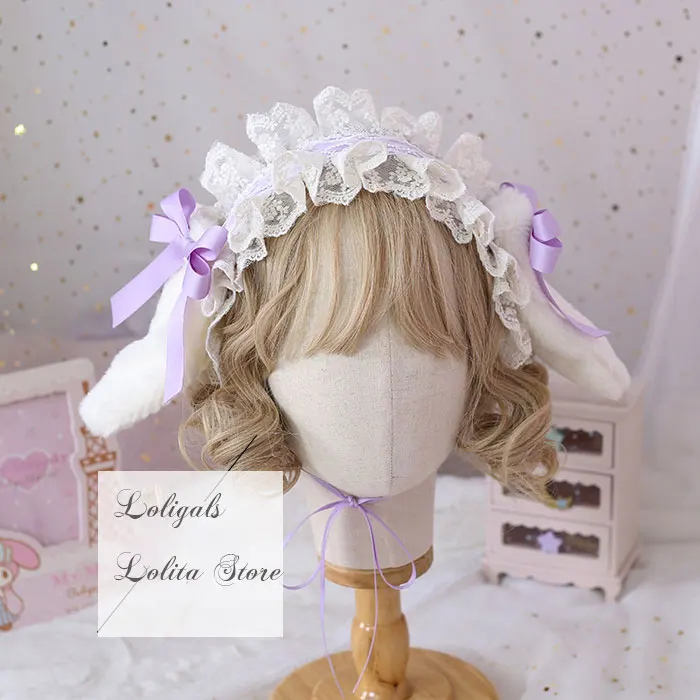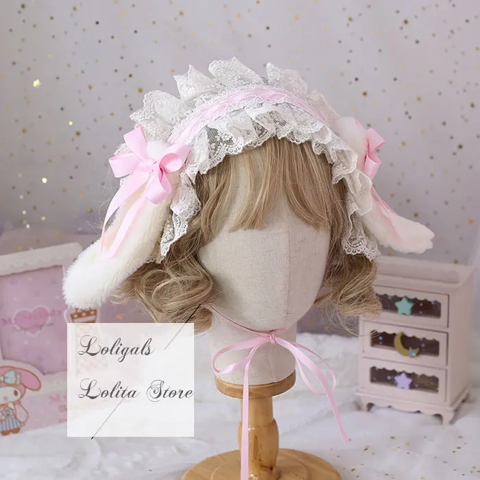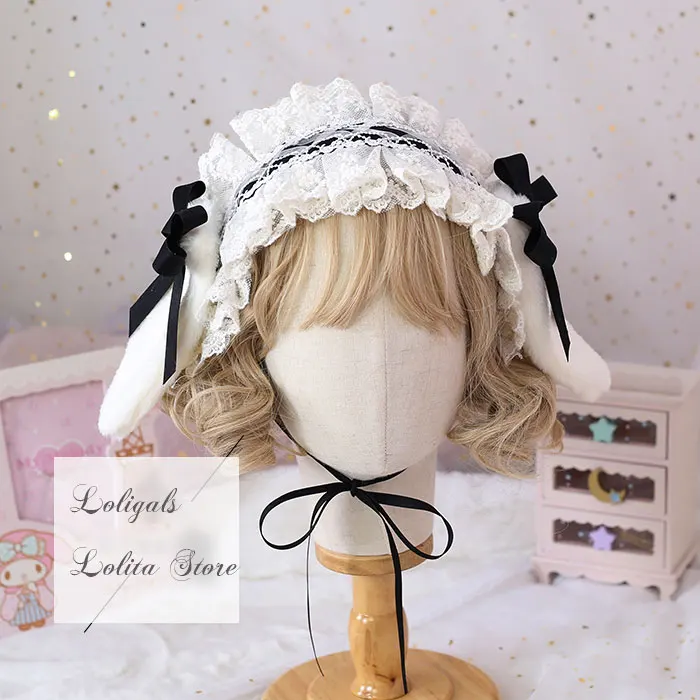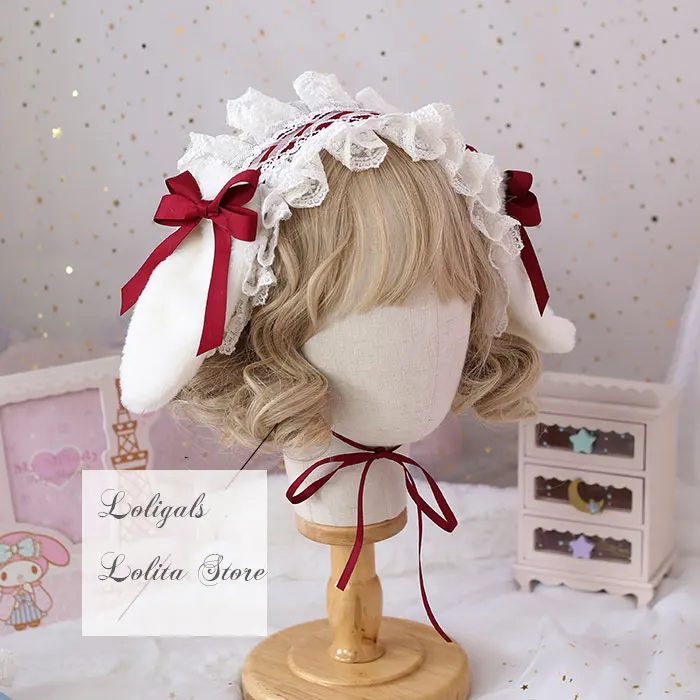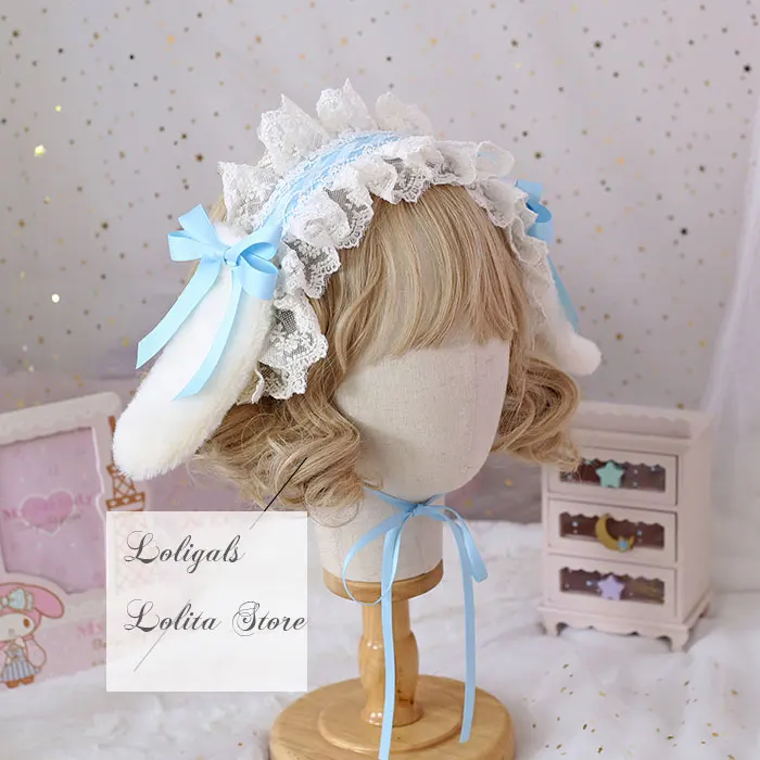 Ободок в стиле Лолиты с оборками и отстегивающимися длинными кроличьими ушками, милый головной убор в стиле мори для девочек KC