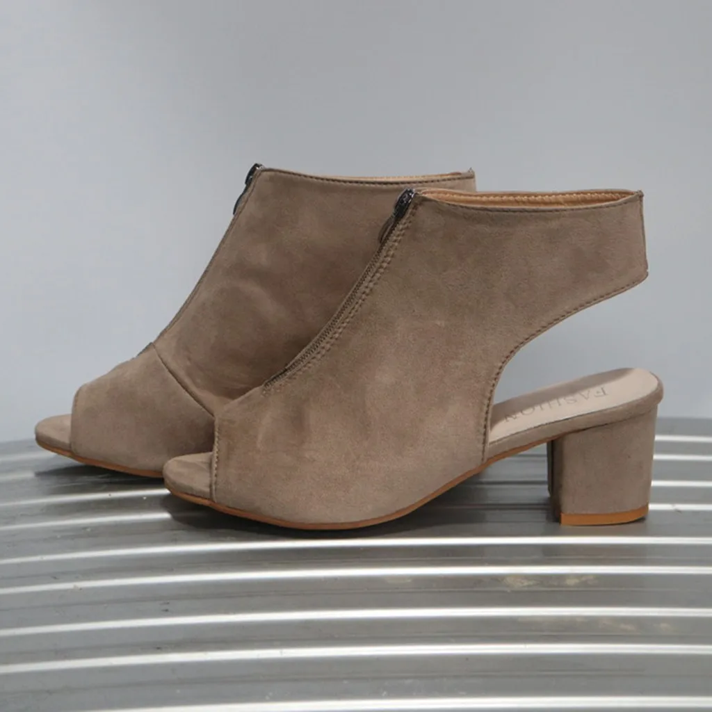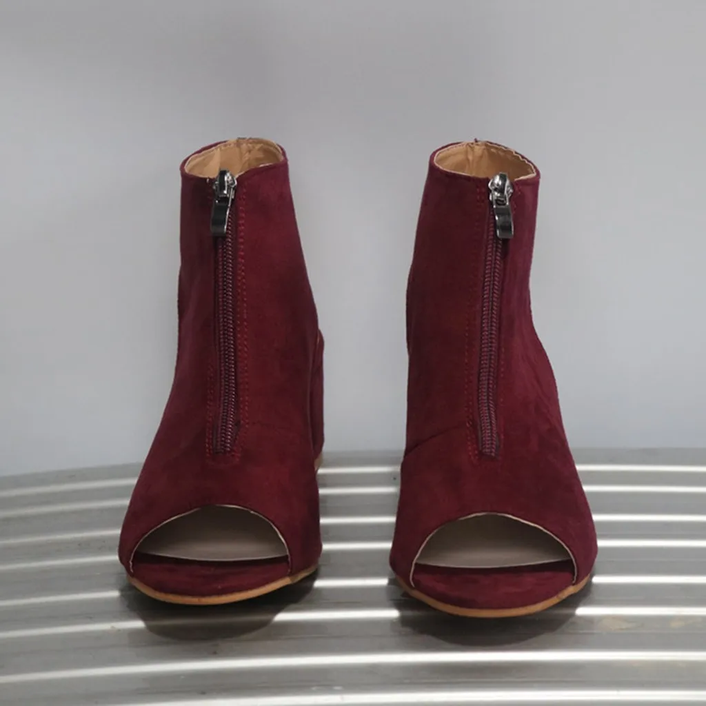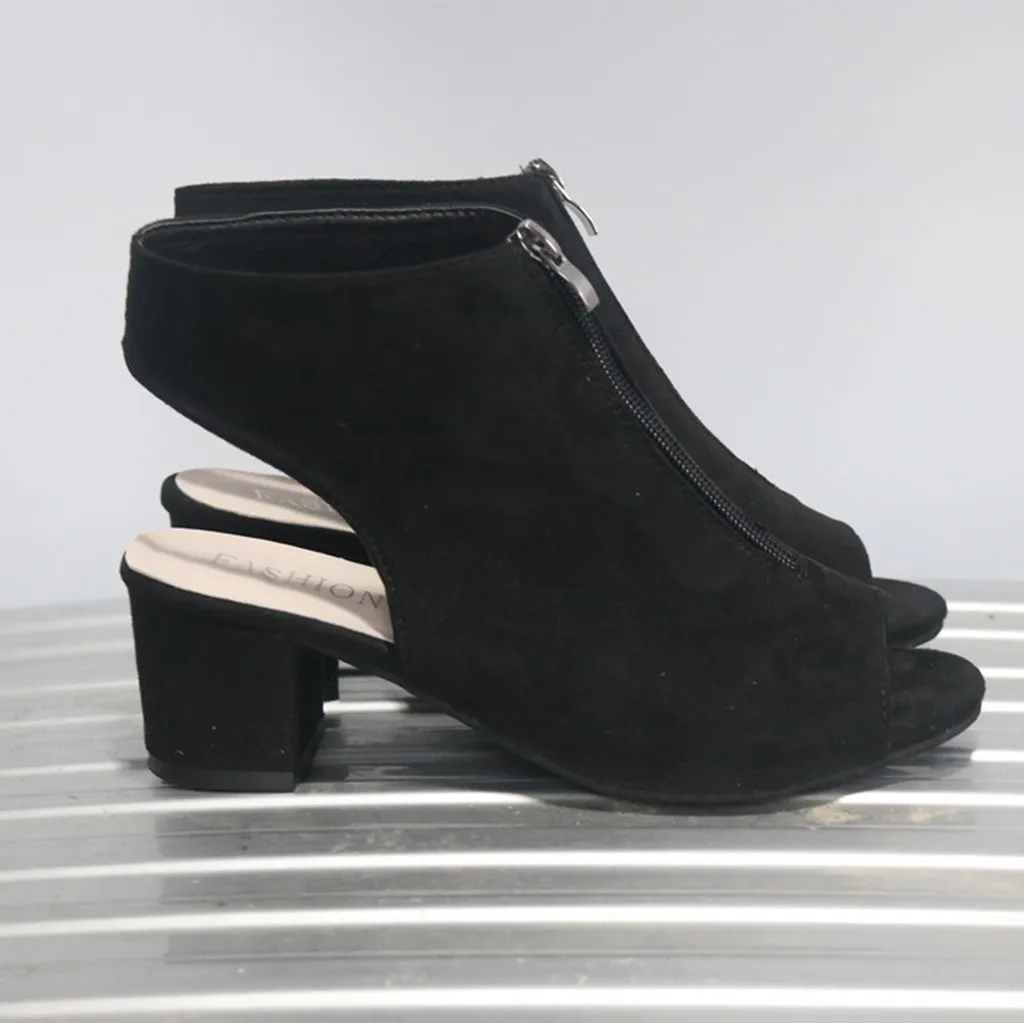 Женские босоножки из искусственной замши, модные повседневные босоножки на высоком каблуке с открытым носком, на молнии, на резиновой подошве, черного цвета