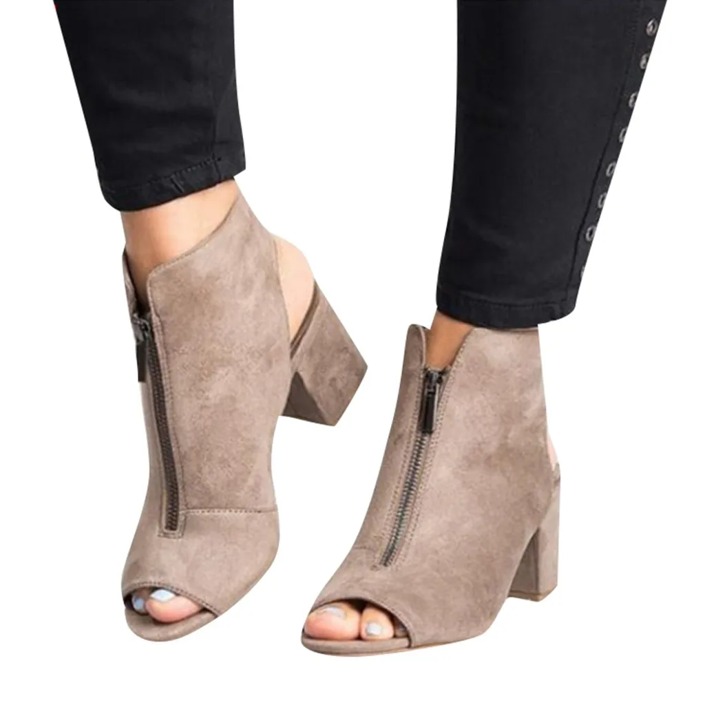 Красивые босоножки; ботильоны из искусственной замши; повседневная обувь с открытым носком на высоком каблуке; модная женская обувь черного цвета на квадратной резиновой подошве с молнией