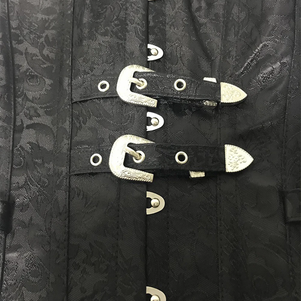 Готический костюм стимпанк, корсет для талии, бюстье, бордовый, черный Жаккардовый Топ, бюстье, корсет для женщин, размера плюс