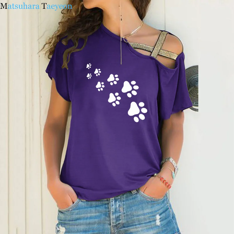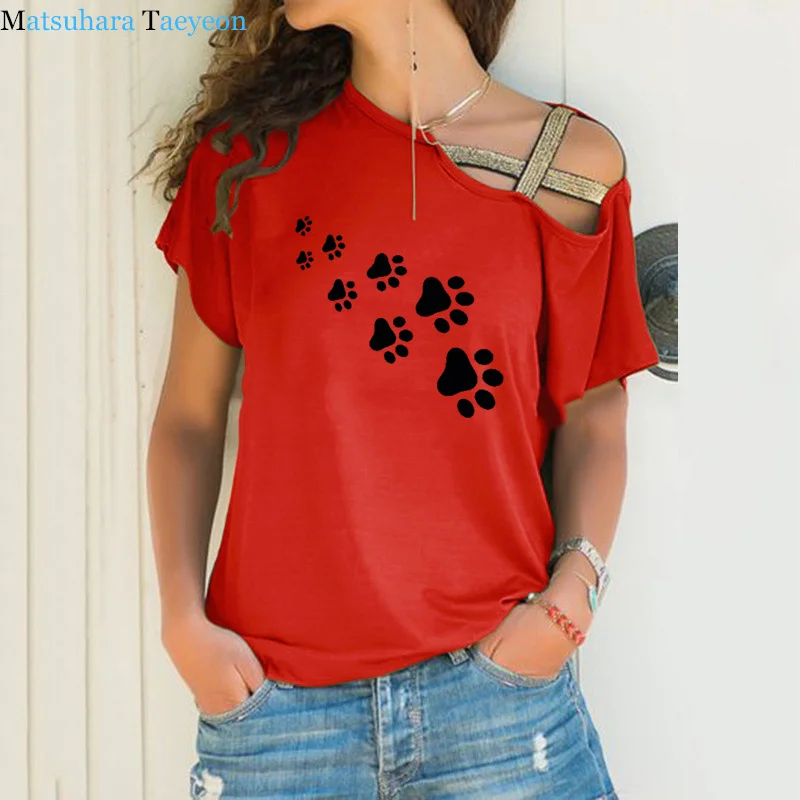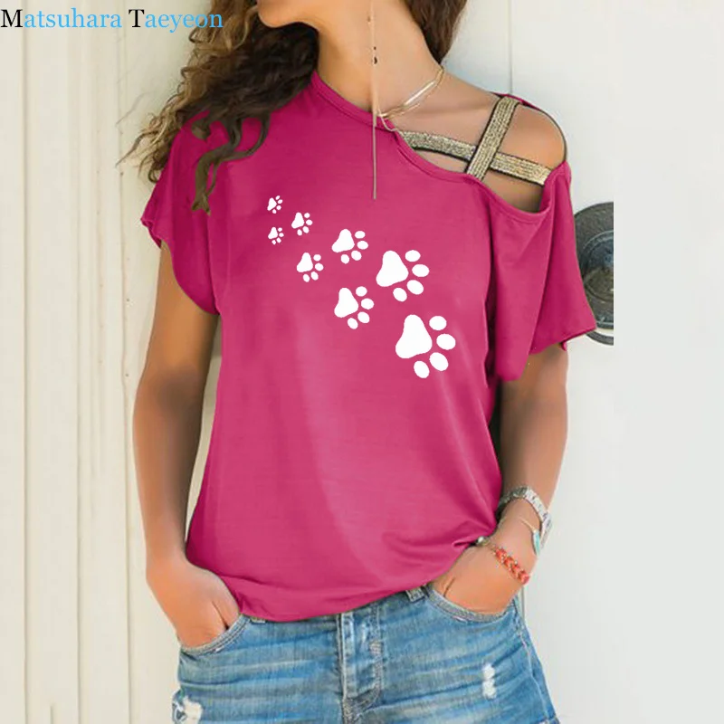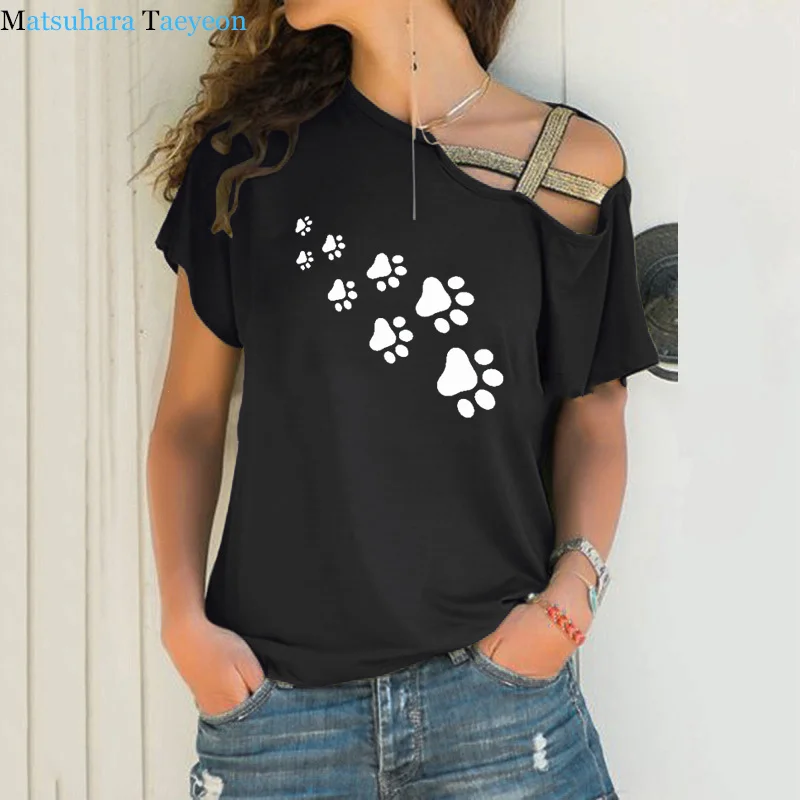 Женская хлопковая Футболка с принтом в стиле Харадзюку, с кошачьими лапками, с коротким рукавом, повседневные топы, забавная футболка