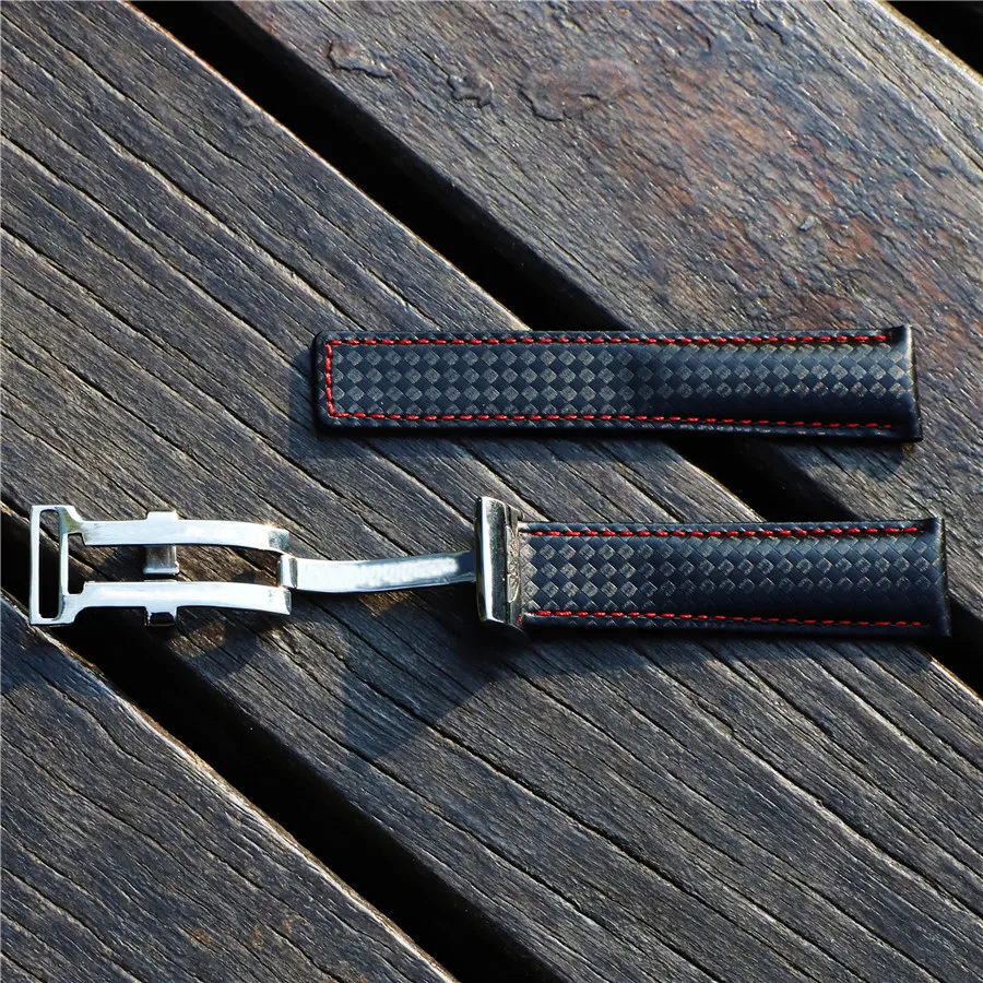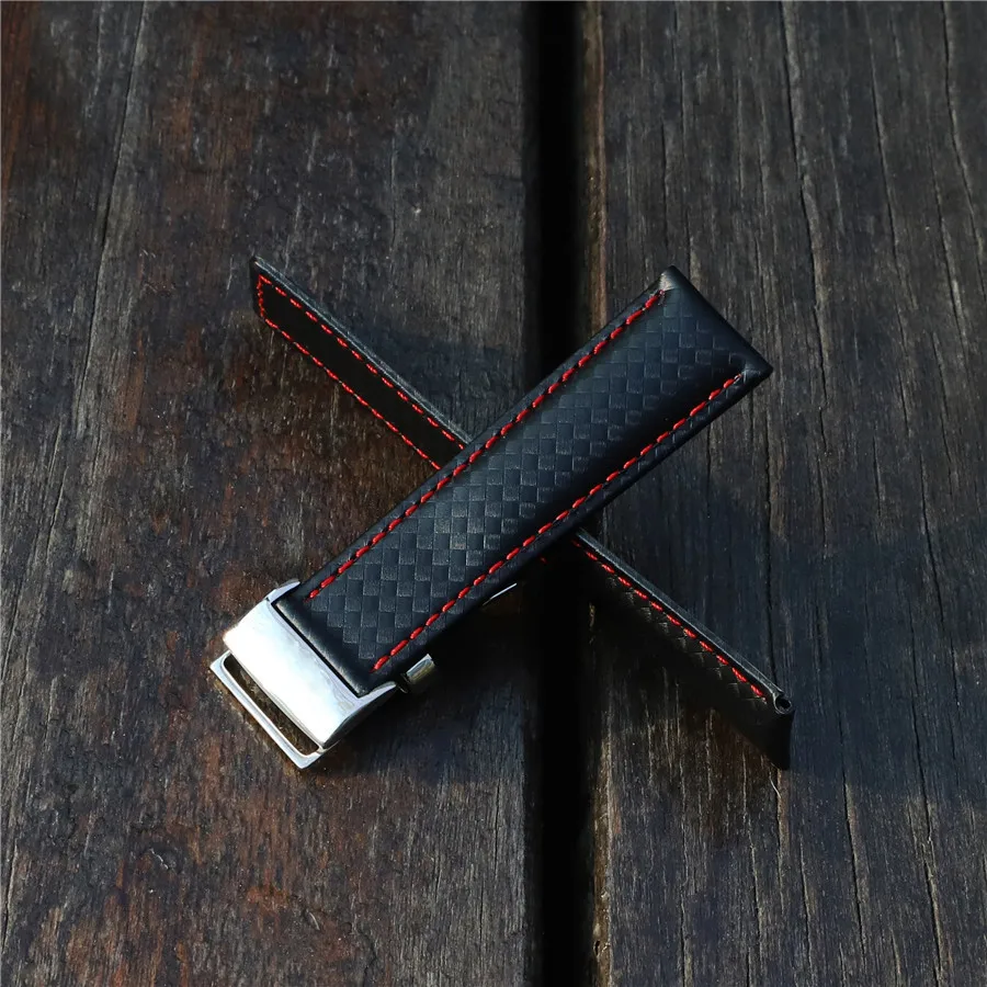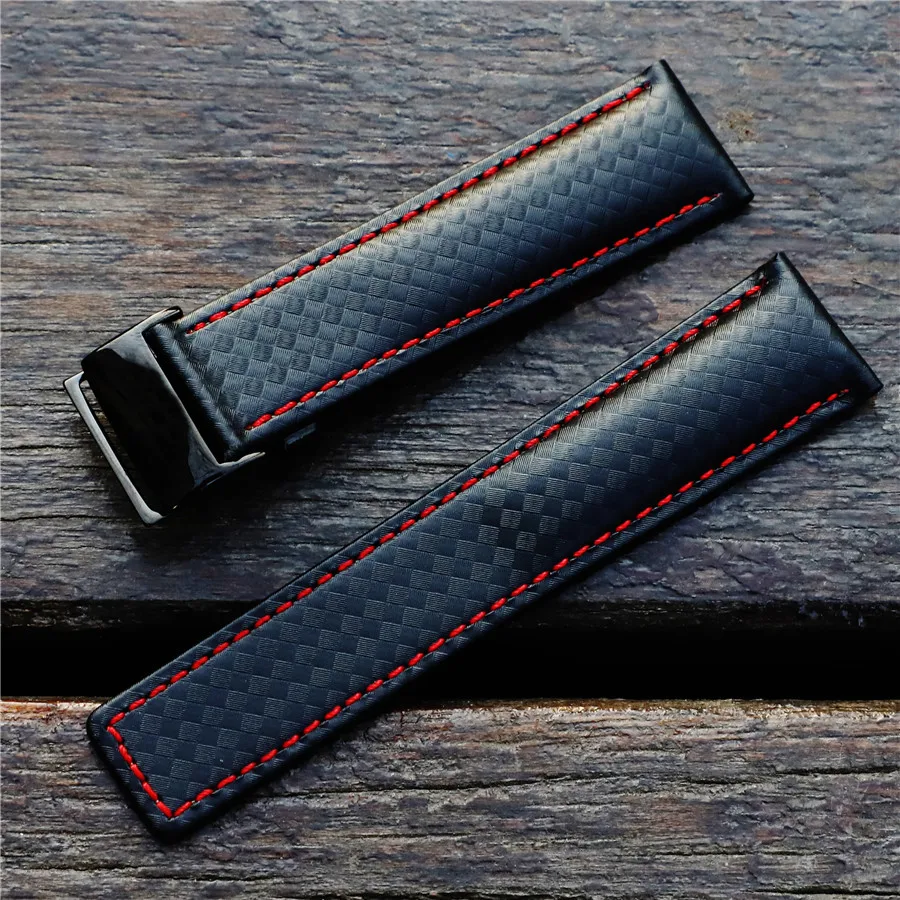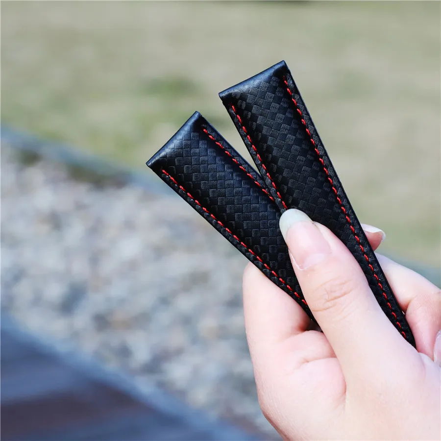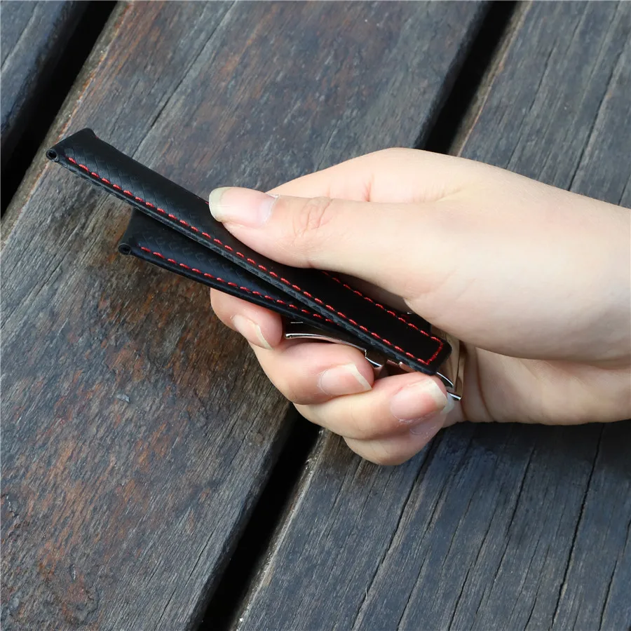 22 мм Ремешки для наручных часов из натуральной кожи, черный, красный, стежок, Ремешки для наручных часов, для Tag, перочинные, Samsung, Breitling, Omega, Huawei, ремешки для часов