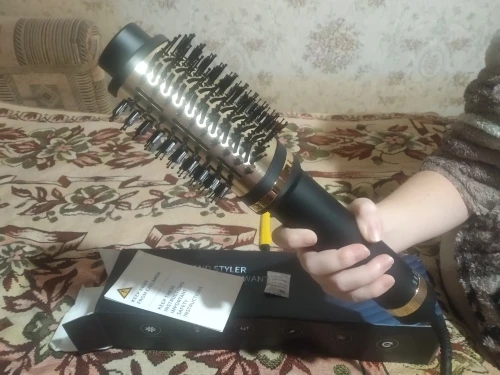 Данную щётку выиграла в "халяву". Щётка длинной 35см, шнур около 2м, крутиться на 360 градусов, что очень удобно. Сама щётка, несмотря на не маленький размер, довольно лёгкая. Пока сушила волосы, рука не устала.) Правда пробовала на короткой стрижке. Щётка полностью соответствует описанию. Имеет три режима нагрева. Пока опробовала только первый. Понравилось. Есть инструкция на английском языке. Никакого неприятного запаха при нагреве не было, хотя производитель предупреждает о такой возможности при первом использовании. Я очень довольна. Магазин рекомендую и сама буду заказывать. Продавцу спасибо за товар.