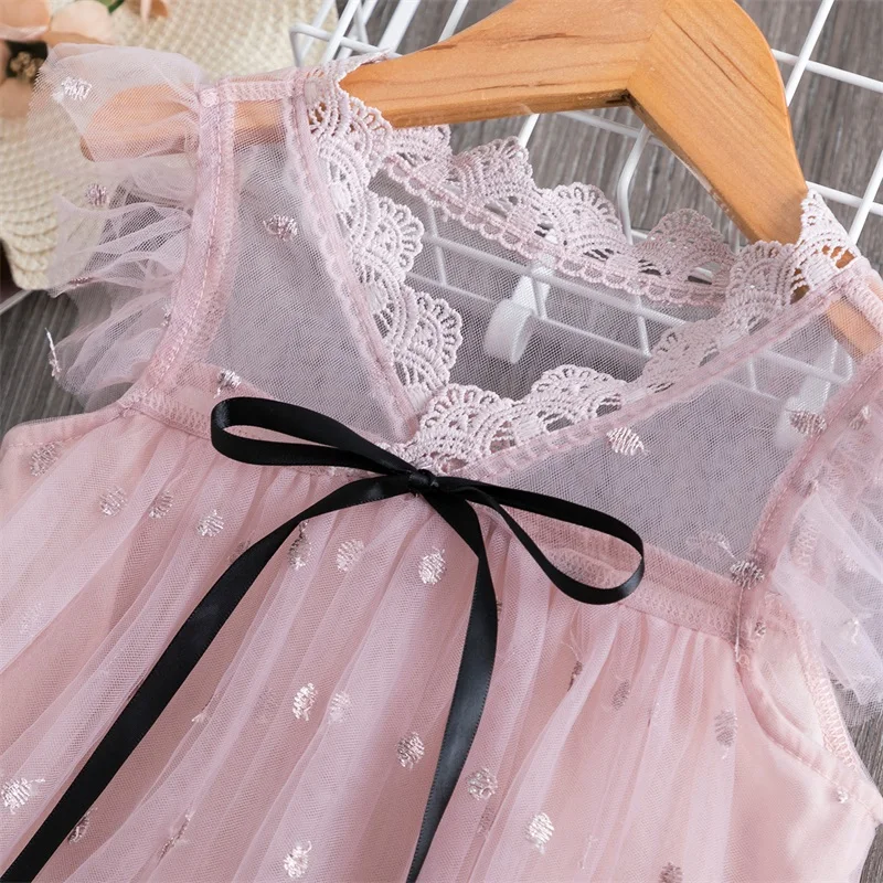 Платье для девочек, летнее, красное, с кружевной вышивкой