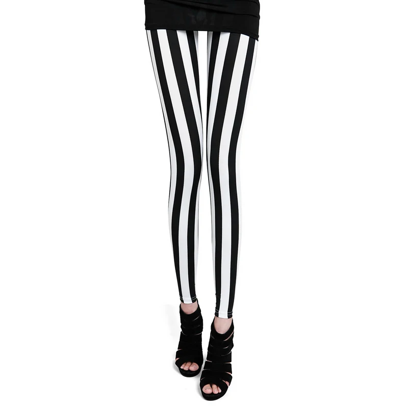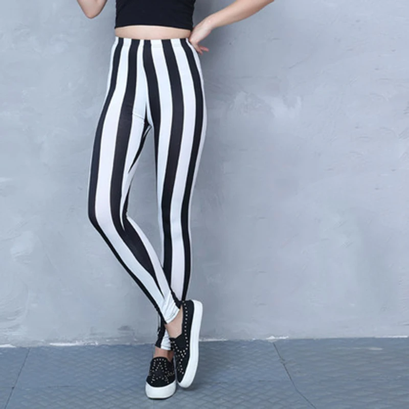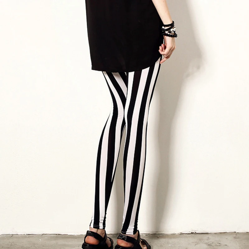 Женские леггинсы в Вертикальную Полоску YGYEEG, черные и белые повседневные эластичные леггинсы длиной до щиколотки