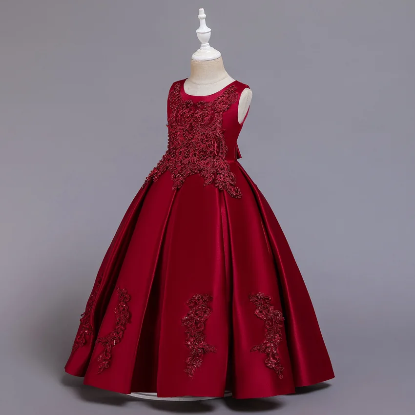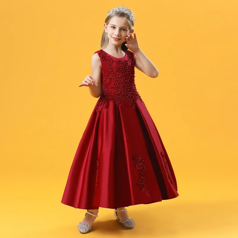2021 платье для девочек в стиле принцессы; Детское платье для девочек; Длинное кружево с бисером, платье высокого качества для банкета, свадьбы, дня рождения вечерние для маленьких девочек одежда для детей