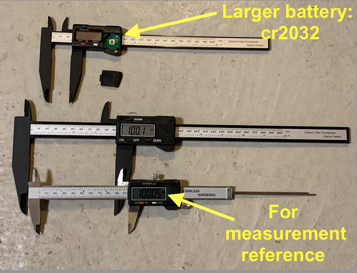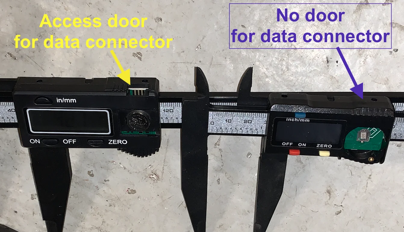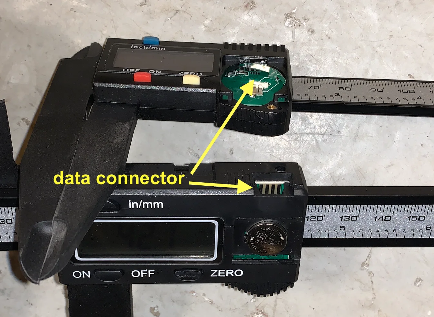 Штангенциркуль хороший. Требуется большая батарея cr2032. Нет двери доступа к разъему данных, но разъем, кажется, существует. Измерение возможно в пределах 0,1 мм. Когда питание выключено-измерение сброса. Это не на моем старом хорошем суппорта и на очень дешевом пластиковом (15 см), я недавно купил.