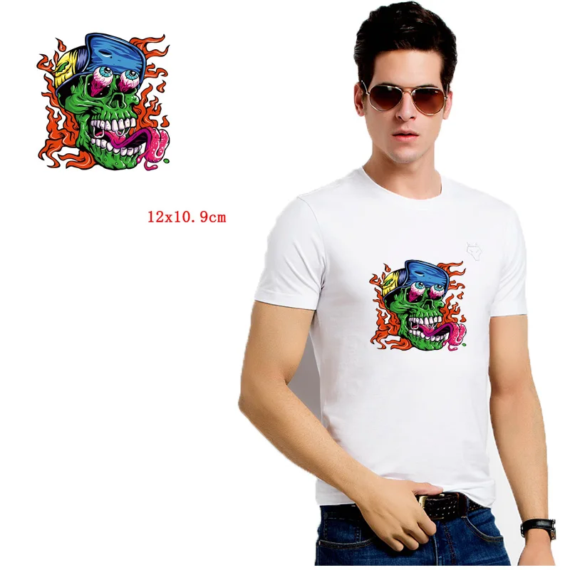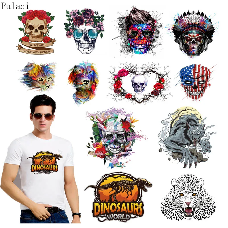 Pulaqi динозавров, для переноса утюгом рок нашивка в стиле панк для наклейка на одежду Термальность теплопроводная поливинилхлоридная череп футболка со значком для стирки