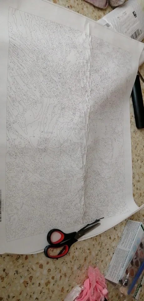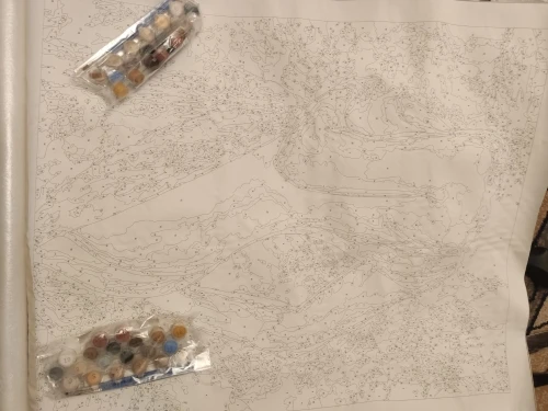 Картина большая, поэтому пришёл двойной комплект красок. Светлые цвета немного прозрачны. Но в остальном я в восторге. Крупные четкие цифры. Качественное полотно. Рамка! Впервые заказала с рамкой. Натянула на подрамник сама, Правда воспользовалась строительным степпером доставка быстрая. Удачи продавцу и магазину!!!