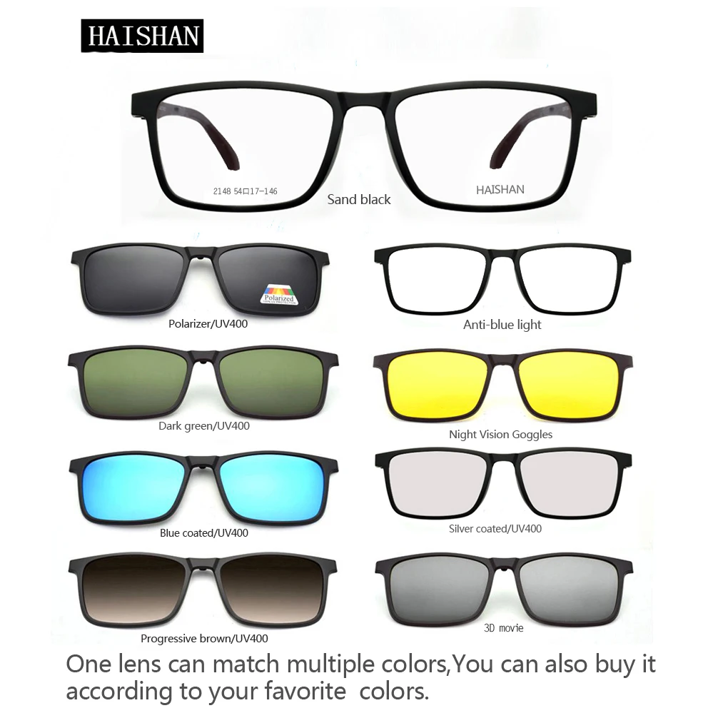 Оправа для очков Мужская на магнитной застежке, поляризационные солнцезащитные очки с ночным видением, пленка с защитой от синего изображения 3D, специальная оправа для вождения