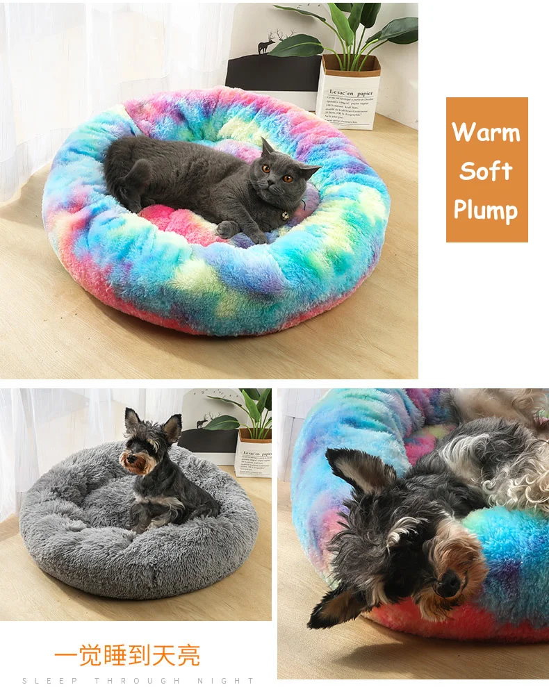 Круглая кровать для собаки дом мягкий длинный плюшевый домик для собаки кровать для корзина для собак товары для домашних животных Подушка для кошек кровать для домашних животных Коврик для дома животные диван