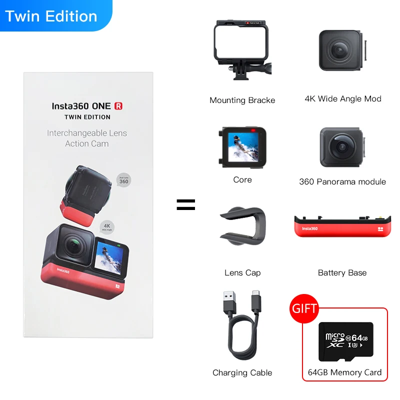 Спортивная Экшн-камера Insta360 ONE R, 5,7 K 360 4K, широкоугольная Водонепроницаемая видеокамера 360 Edition и Twin Edition