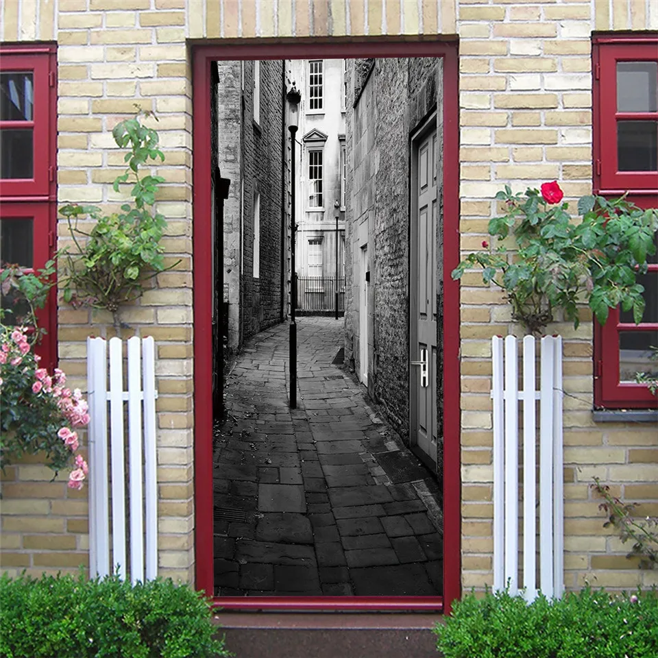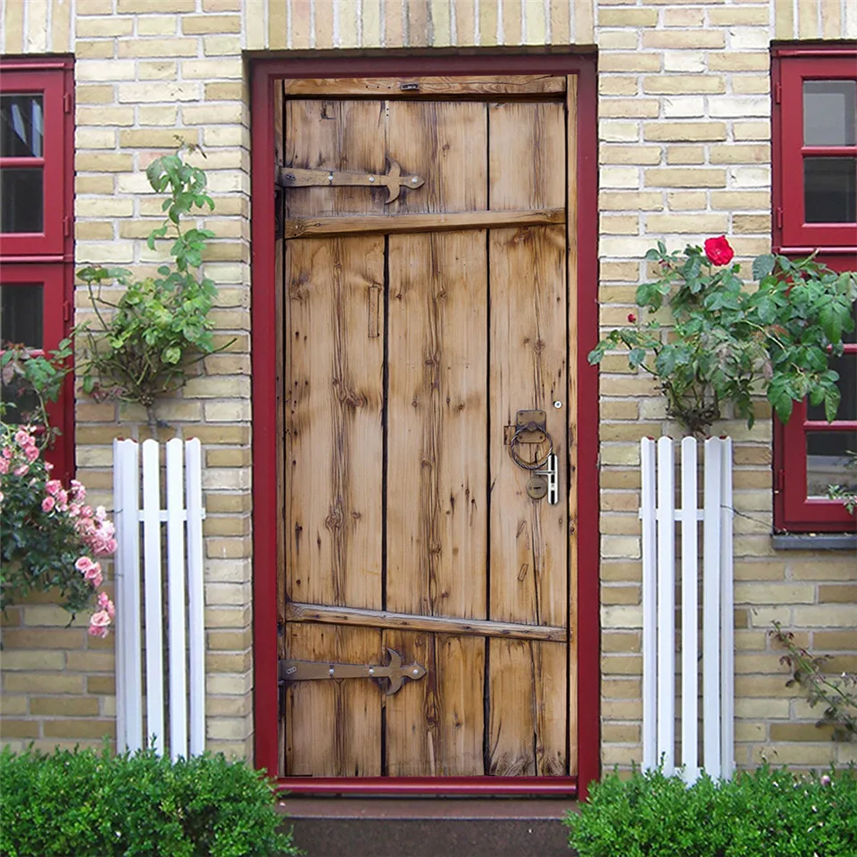 Настенные виниловые обои с изображением деревянного коридора и двери, самоклеящиеся наклейки на двери, съемный постер, настенные наклейки, домашний декор, стикер