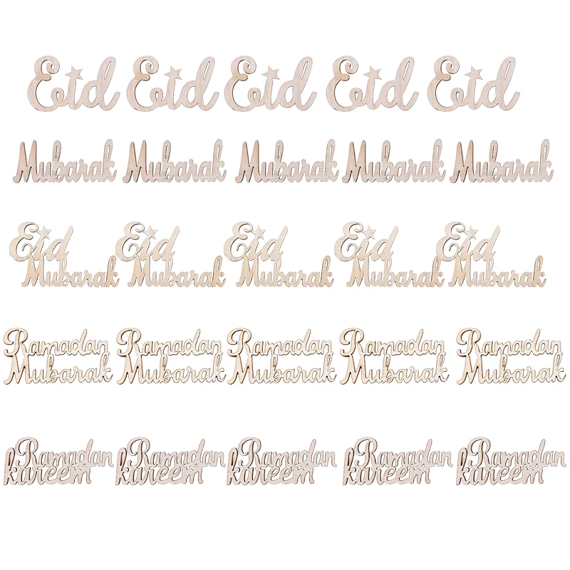 153060 шт. мини деревянные поделки ИД Мубарак праздничный стол рассеяние деревенский Декор DIY вырезанное дерево мусульманский Рамадан кареем реквизит для сцены