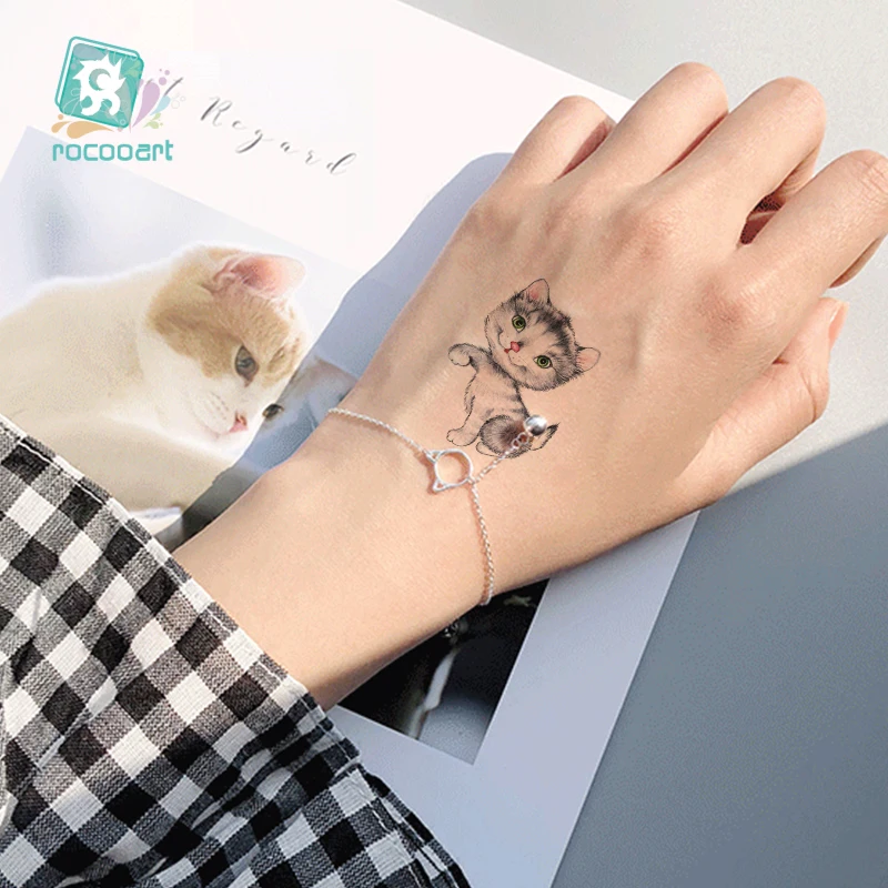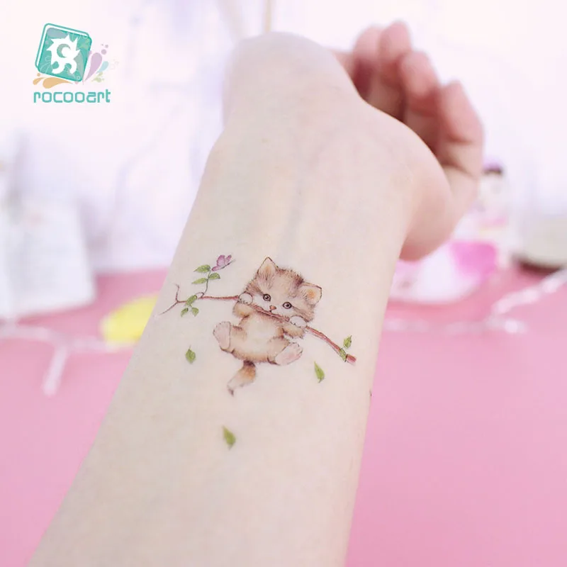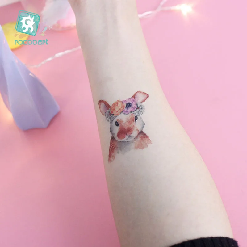 Rocooart переводная вода поддельная флэш-Татуировка милый кролик кошка панда маленькое животное Водонепроницаемая временная татуировка наклейка для взрослых ki