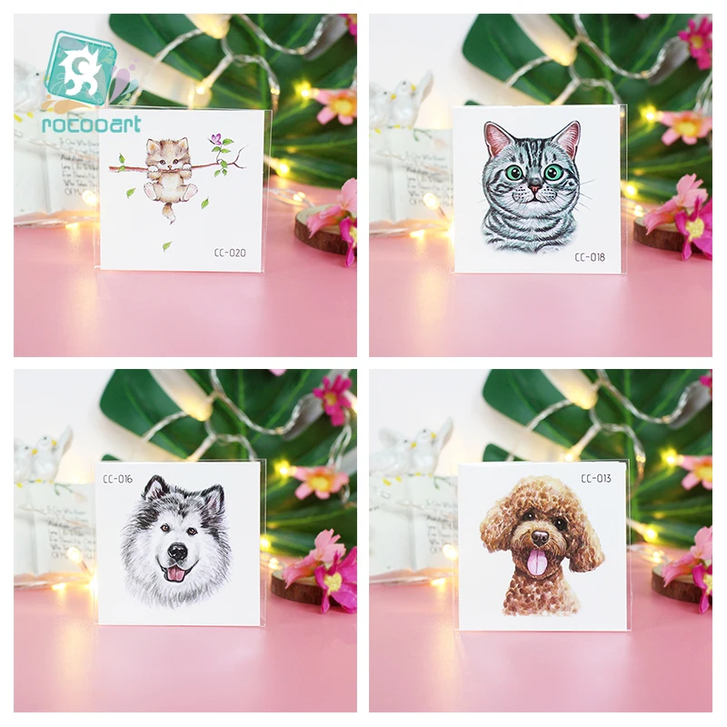 Временная татуировка Rocooart в виде кошки и собаки, наклейка с акв...