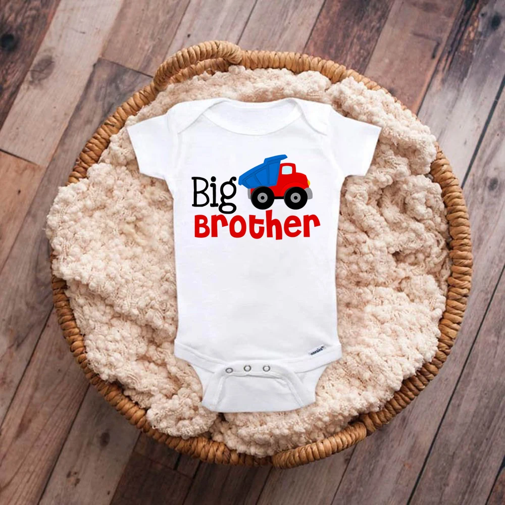Боди для маленького старшего брата, Красная футболка с трактором, рубашки с поездом, топы с пожарной машиной, рубашка для мальчиков, костюмы с объявлениями